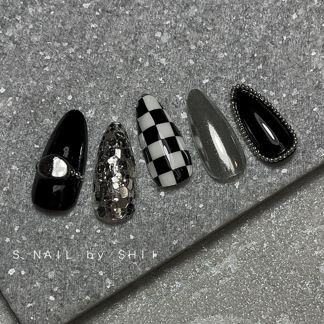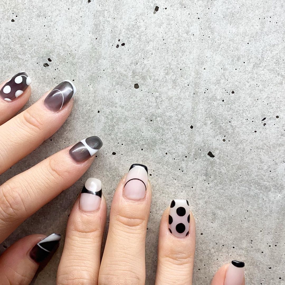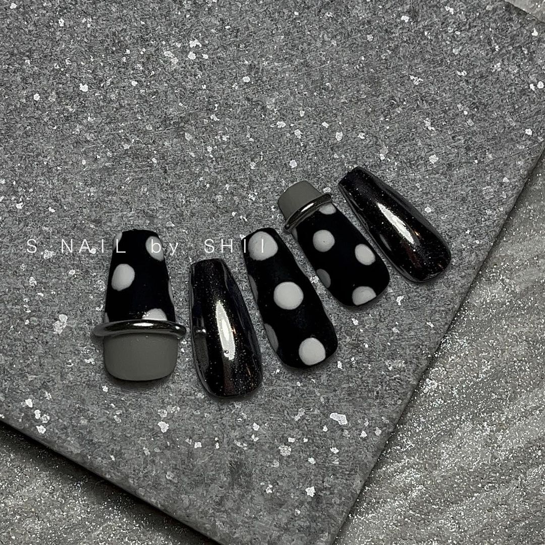 個性豊かなブラックのアートネイル48選!水玉柄やチェック柄など!