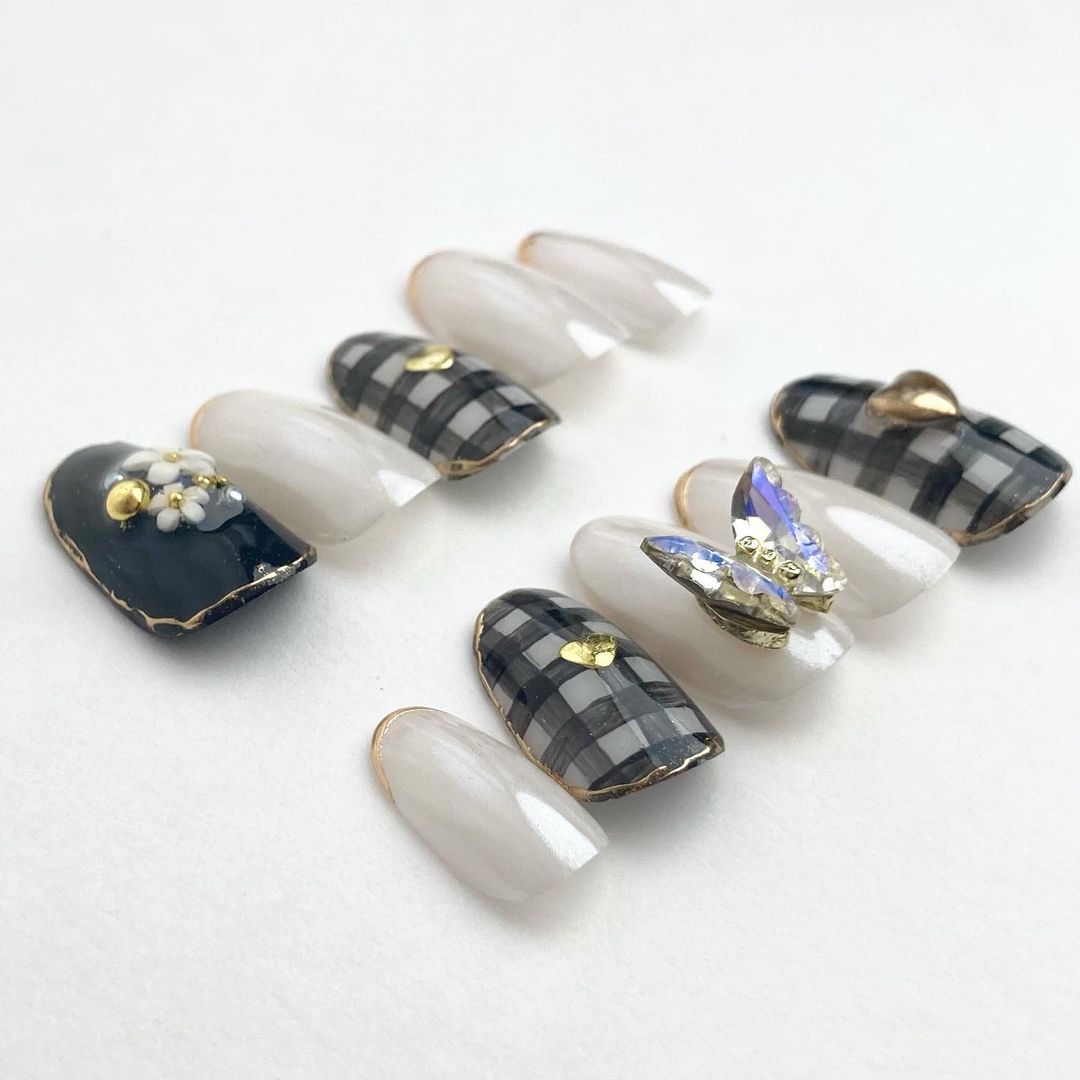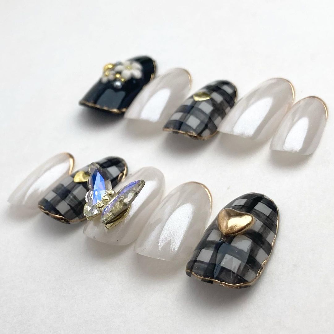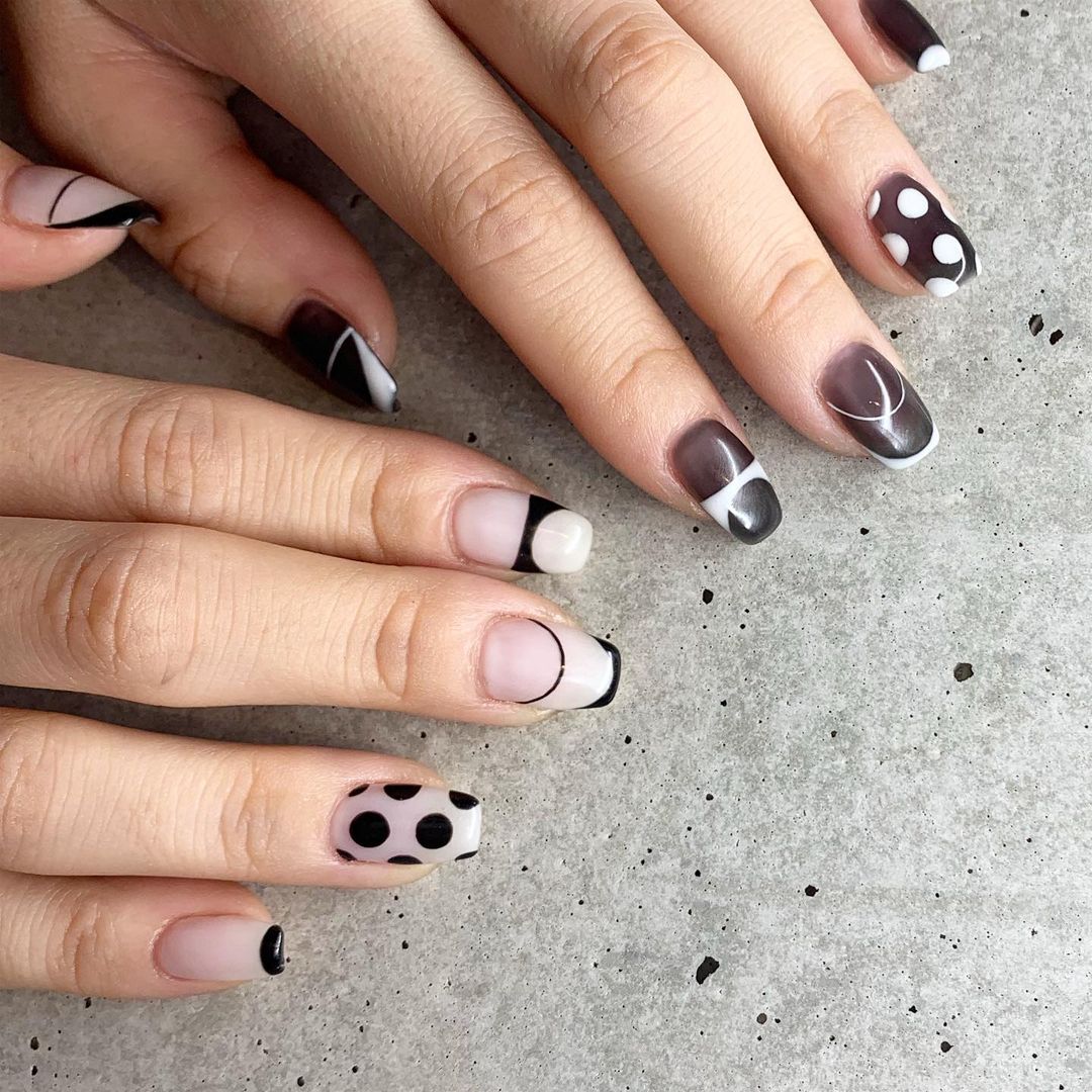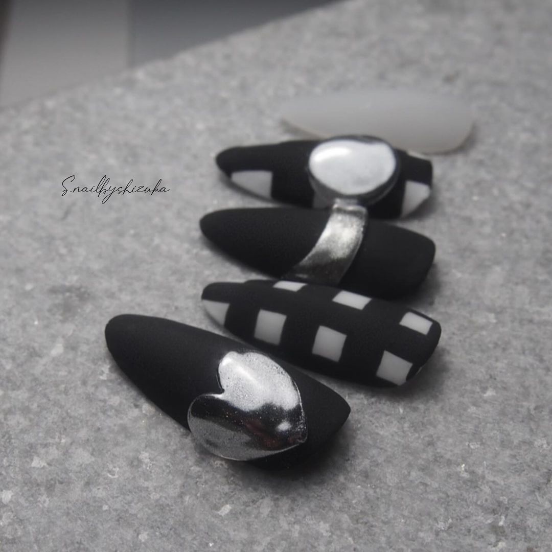 個性豊かなブラックのアートネイル48選!水玉柄やチェック柄など!