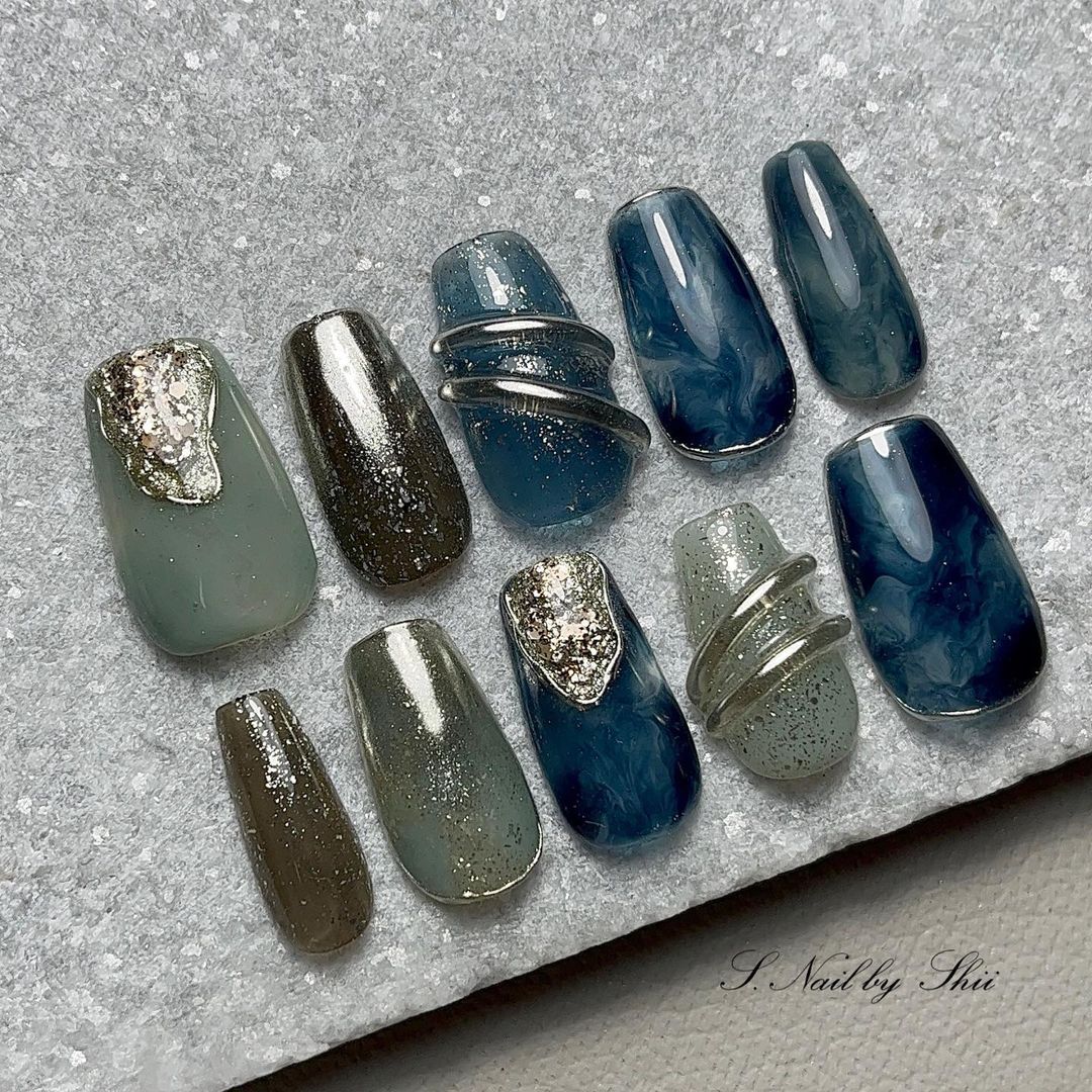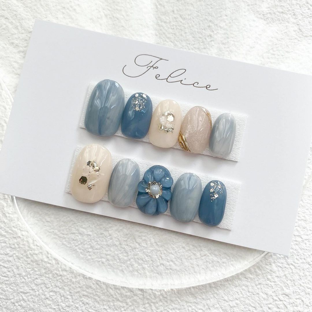 今回はブルー系カラーのアートネイルデザインをご紹介します✨