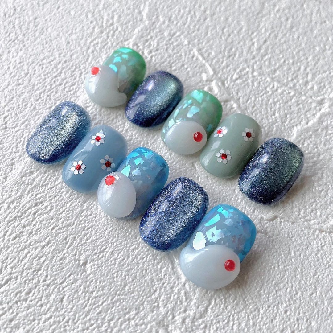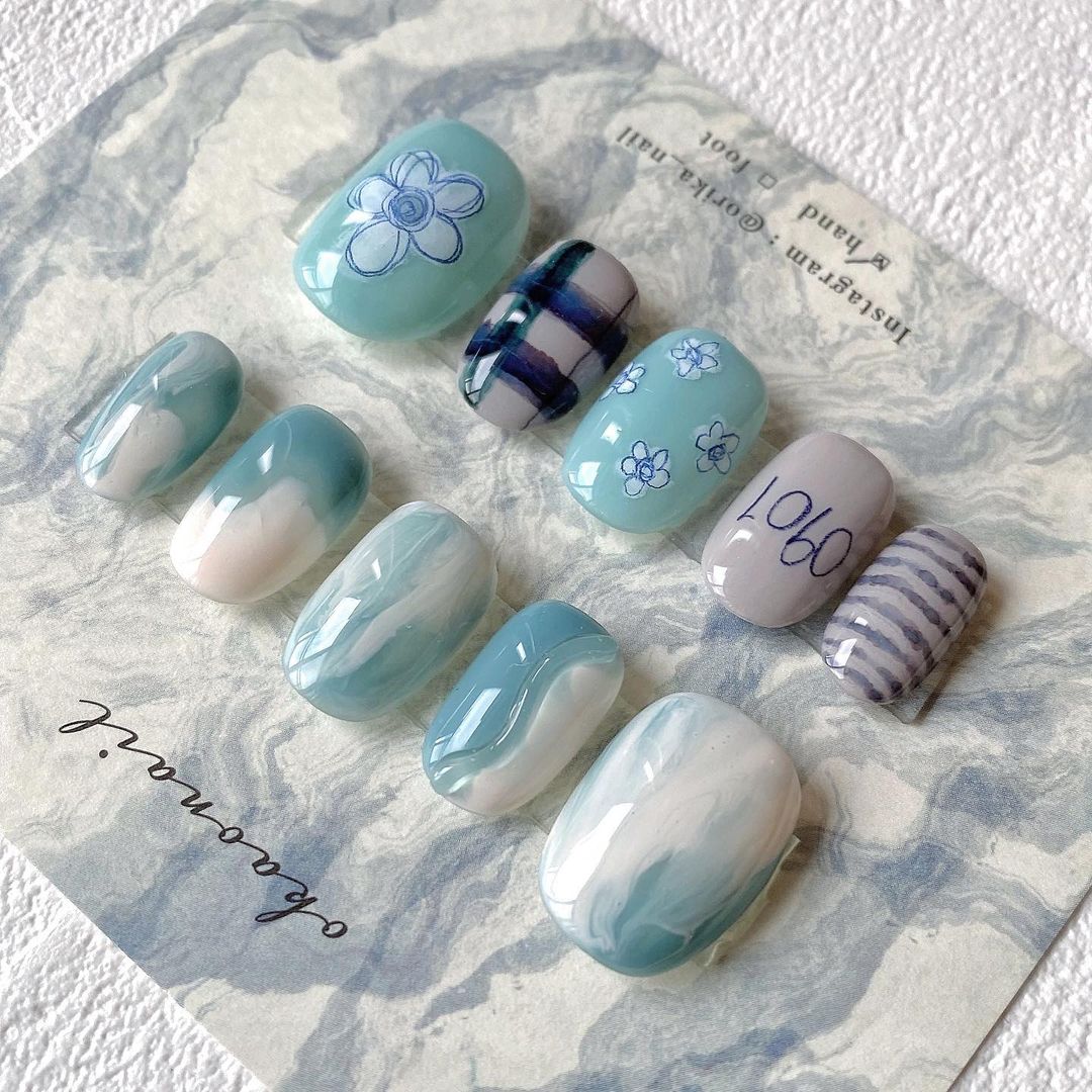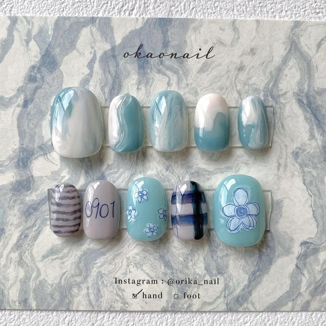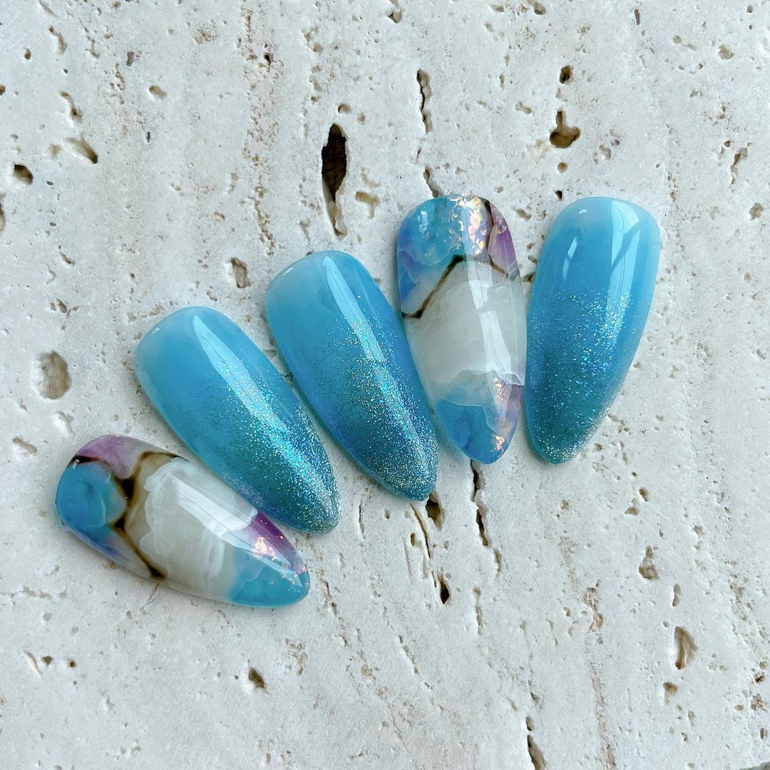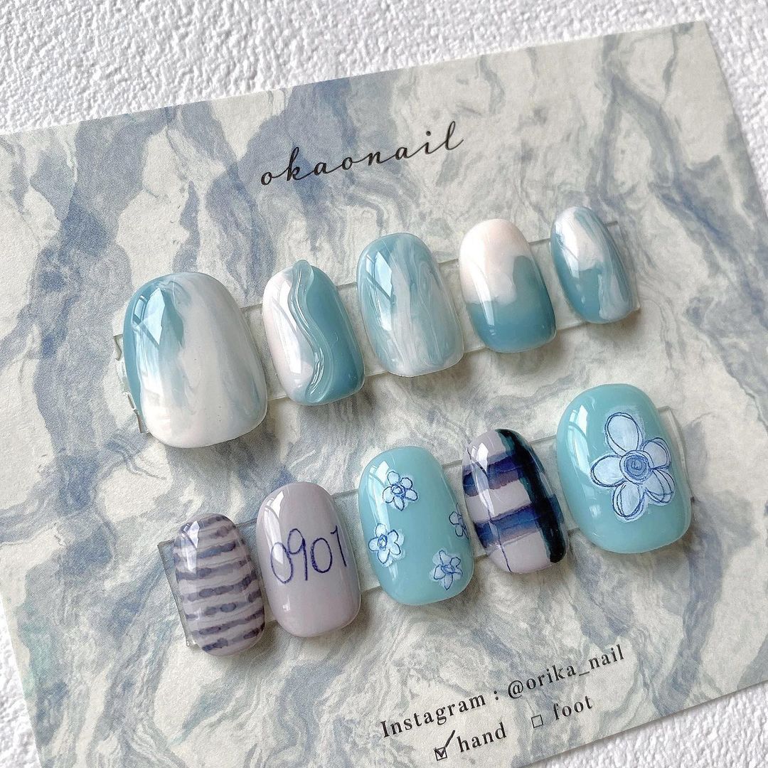 今回は水色系カラーのアートネイルデザインをご紹介します✨
