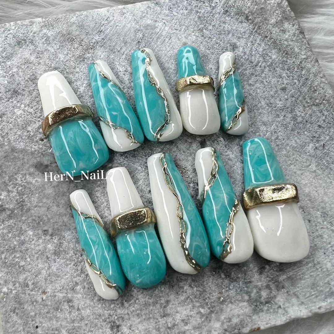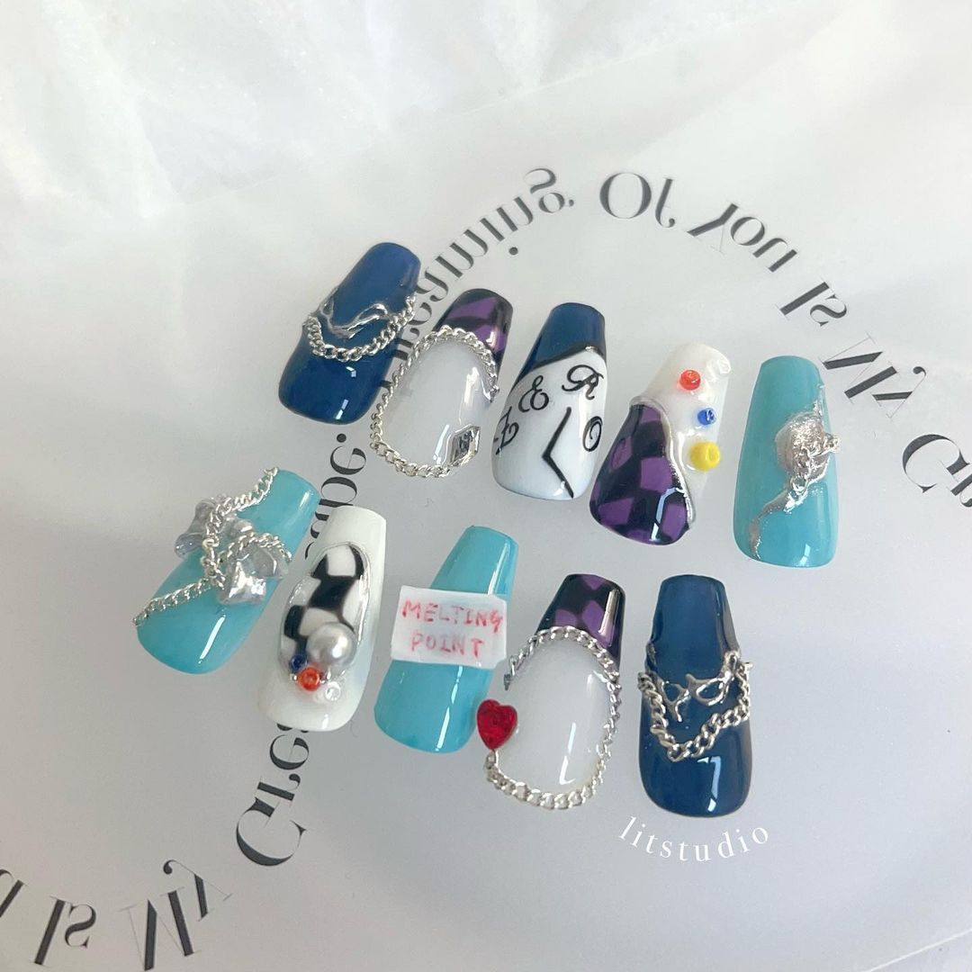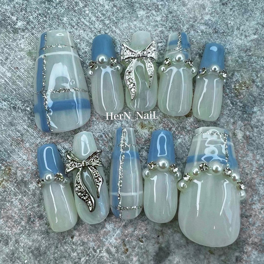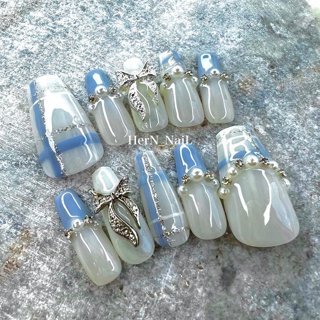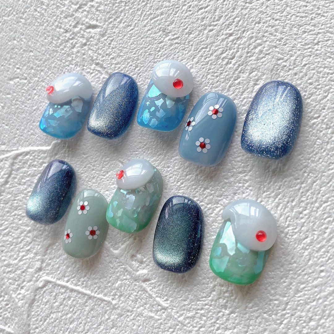 今回は水色系カラーのアートネイルデザインをご紹介します✨
