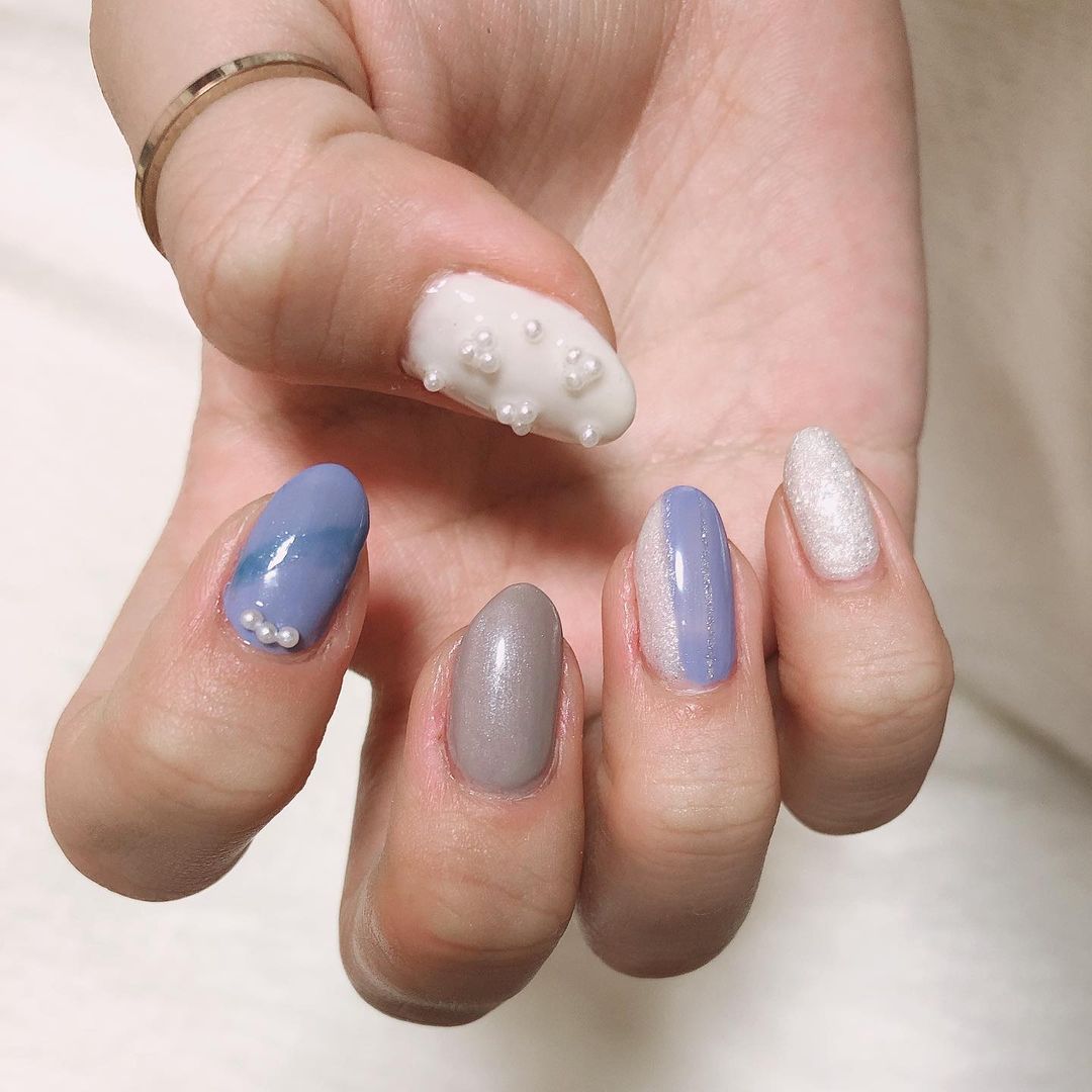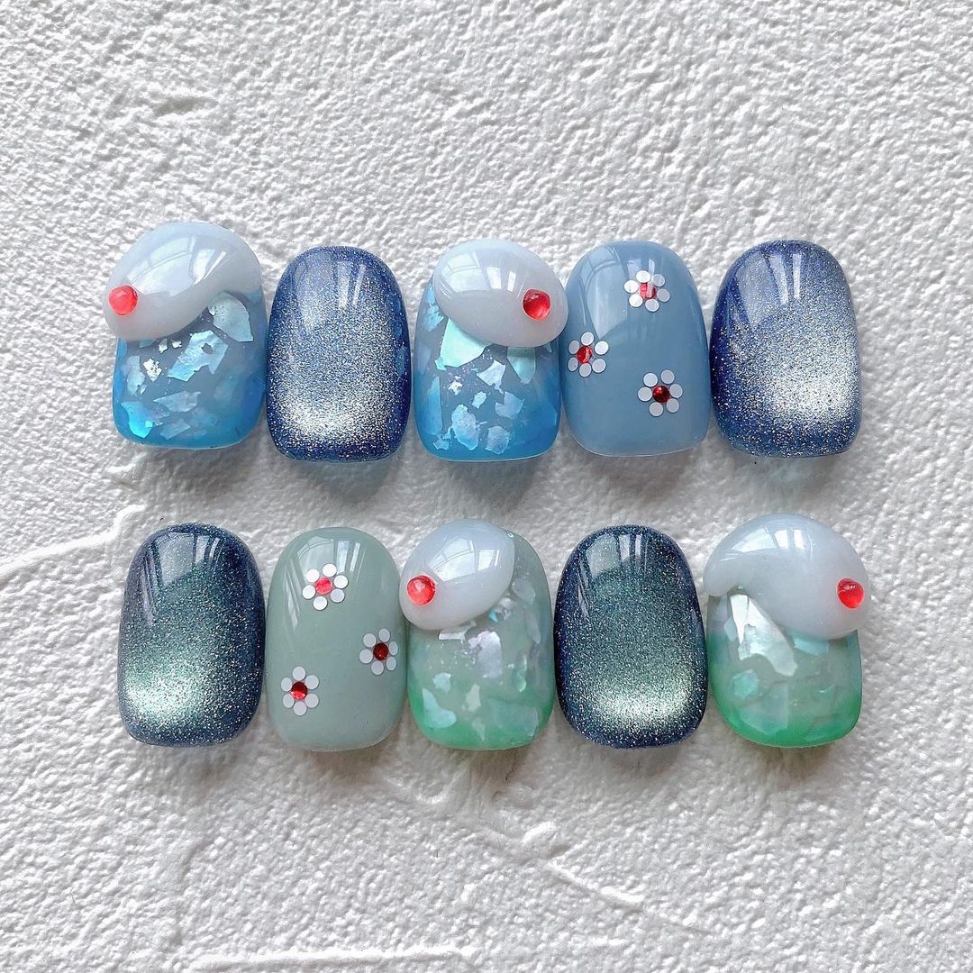 個性派も綺麗めもキュートも!Instagramで人気の水色系アートネイル44選!