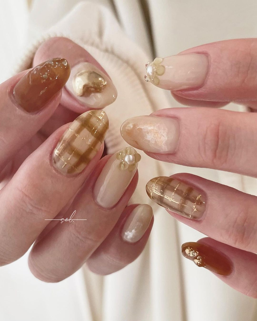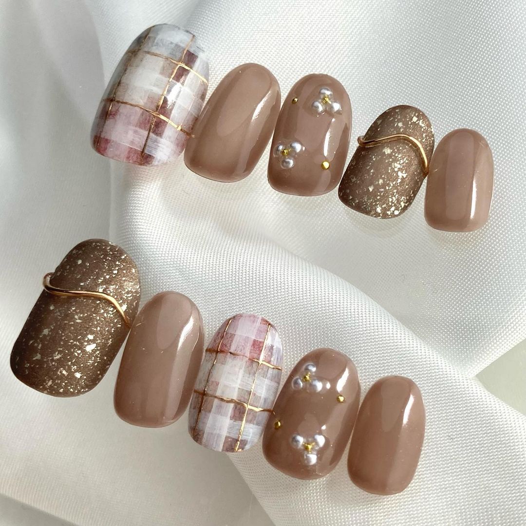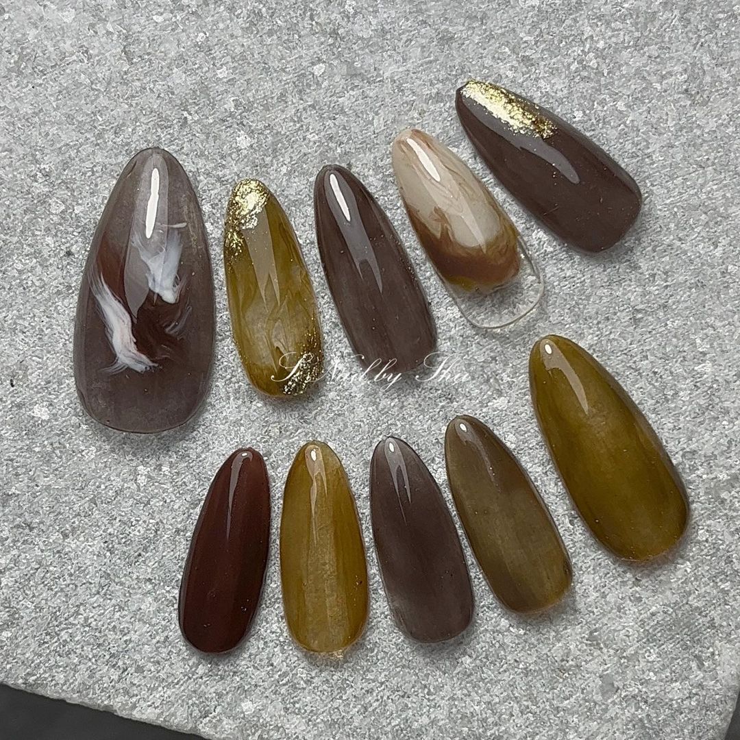 秋っぽいネイルにしたい方にはもちろん、ブラウン系のネイルが好きな人にもおすすめのデザインばかりです。