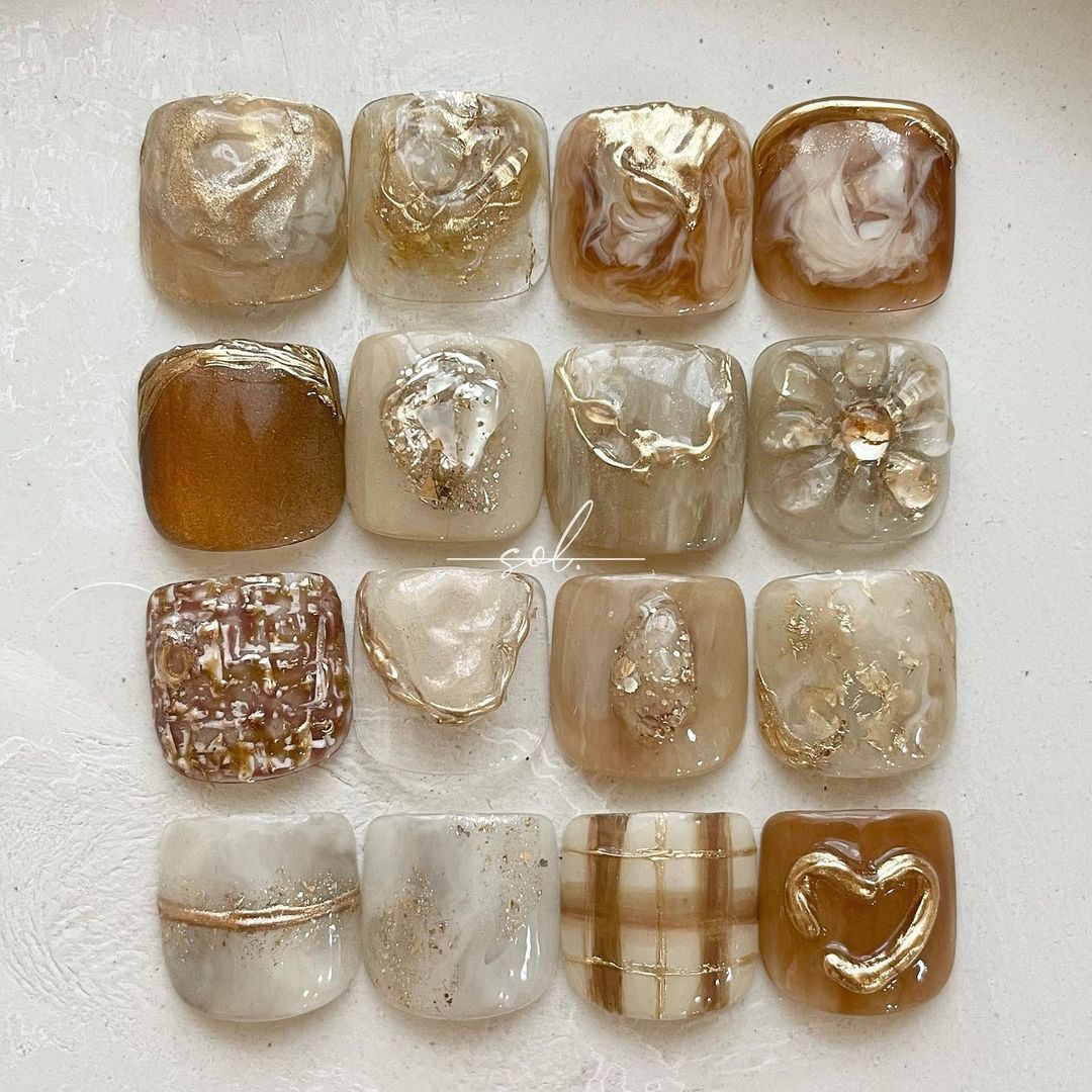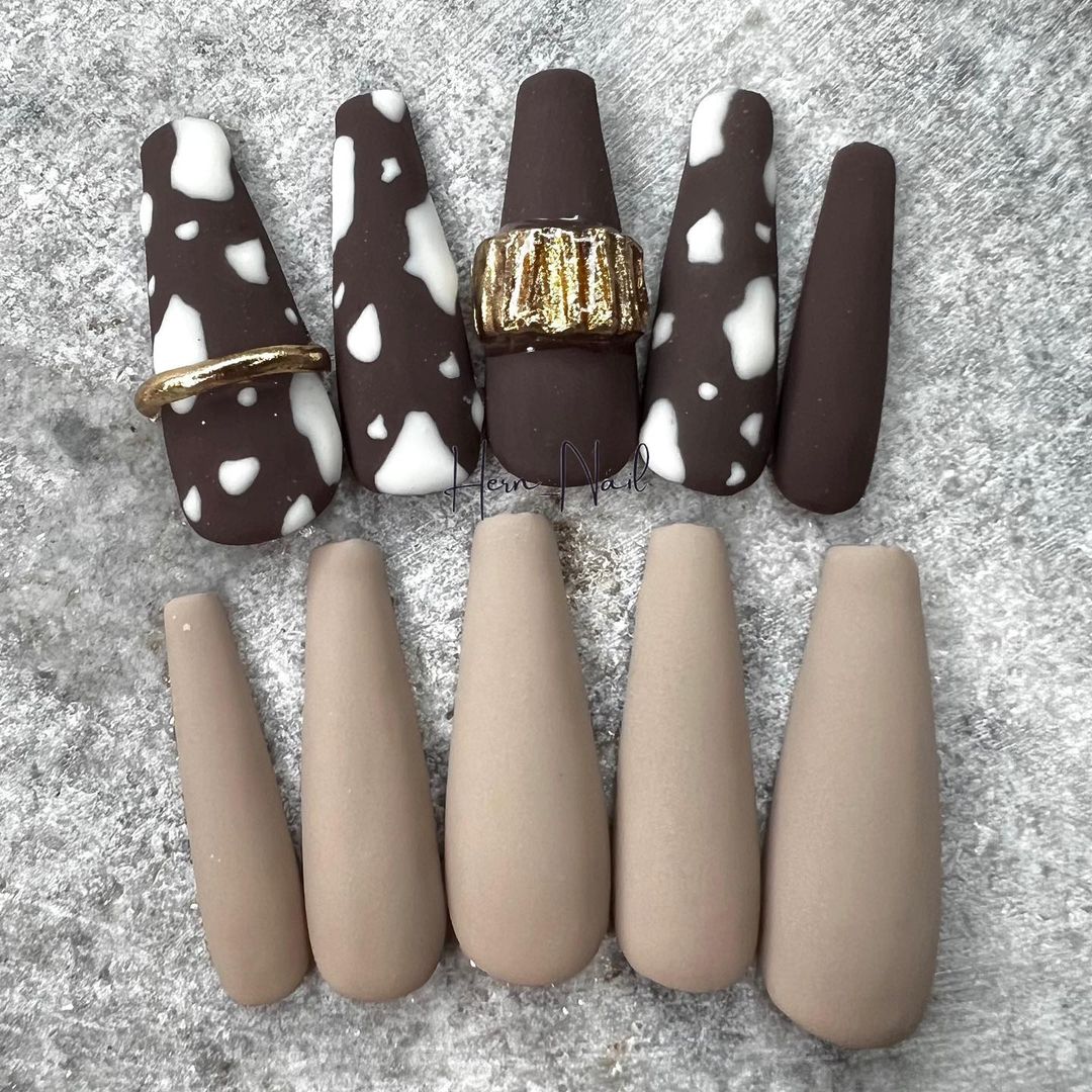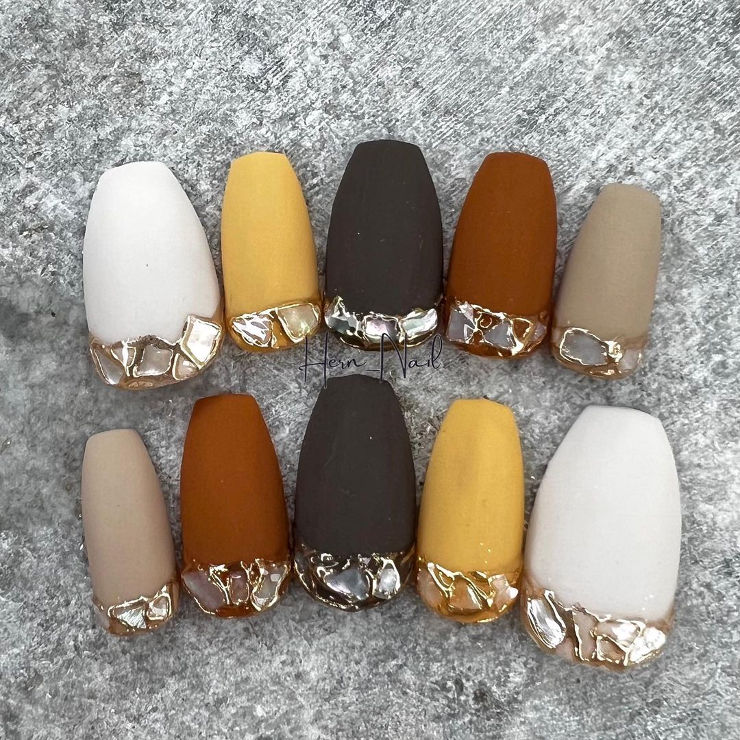 秋っぽいネイルにしたい方にはもちろん、ブラウン系のネイルが好きな人にもおすすめのデザインばかりです。