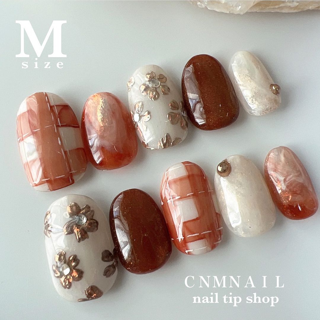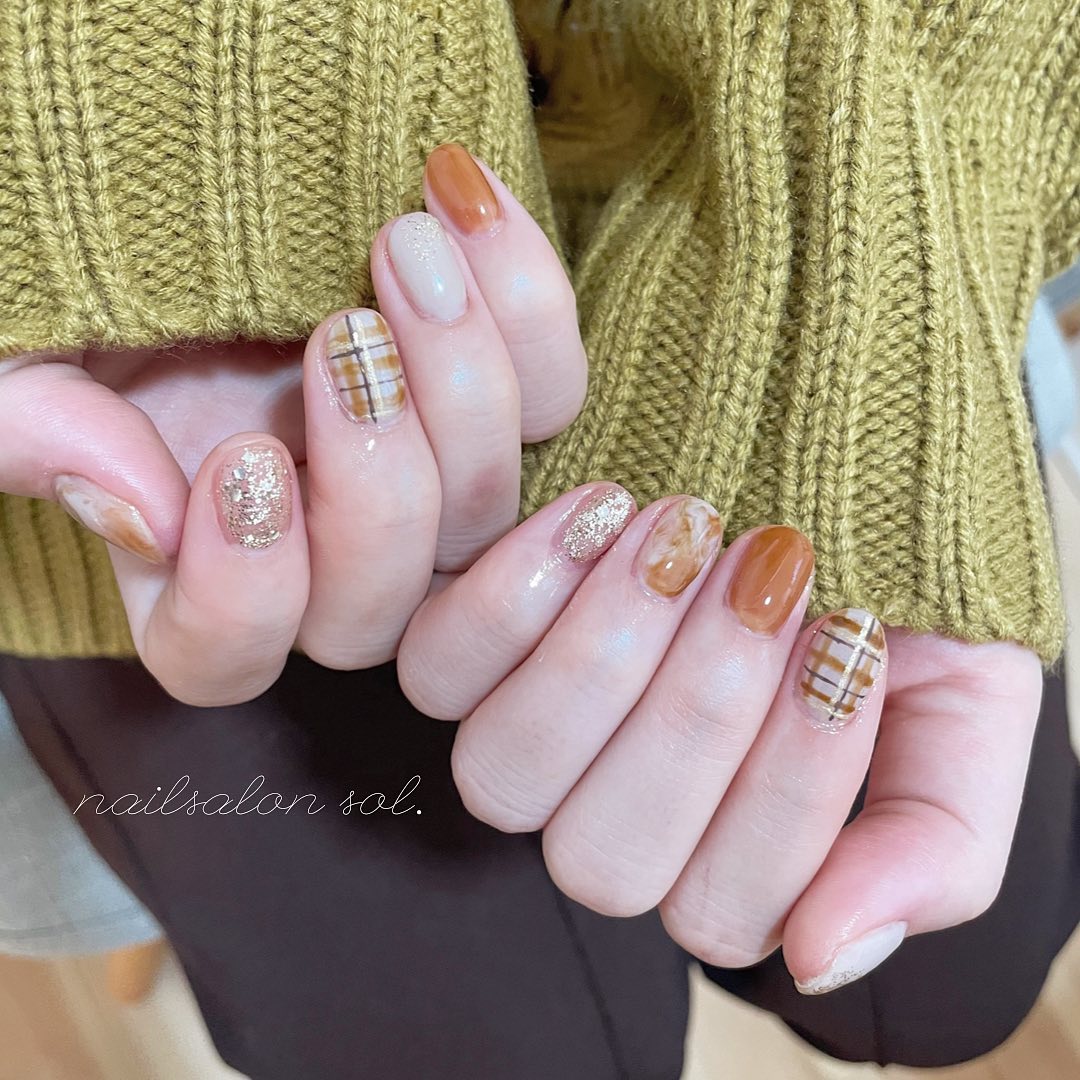 【チェック・グラデーション】オレンジ系カラーの秋ネイルデザイン23選!