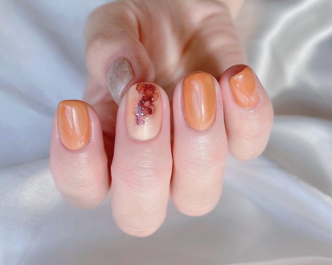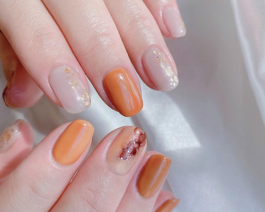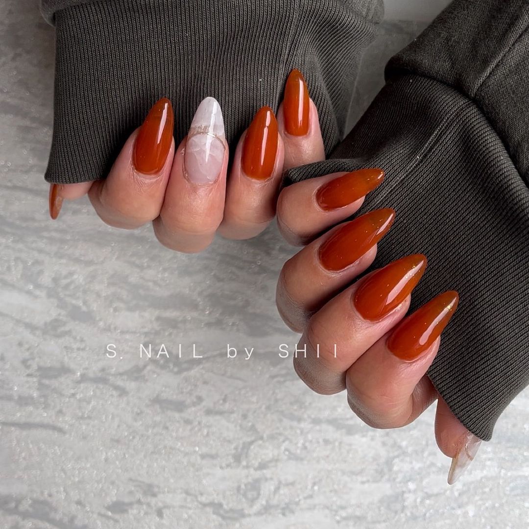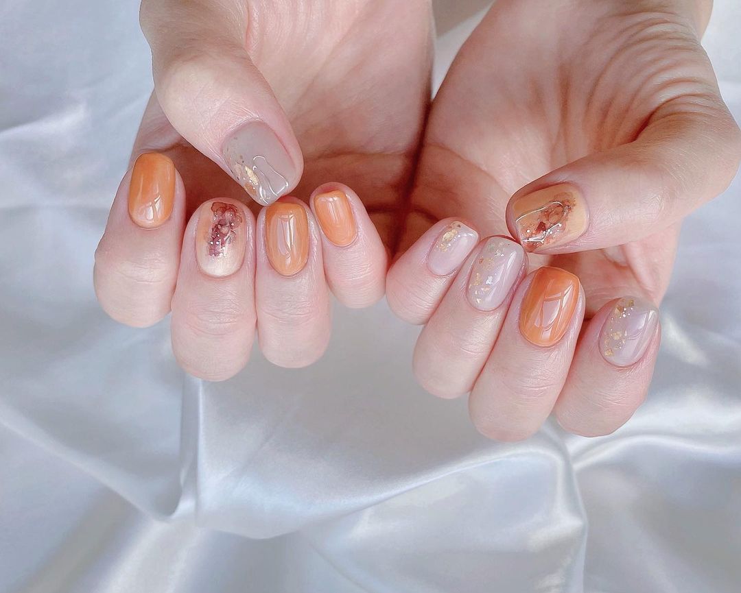 今回はオレンジ系カラーの秋ネイルデザインをご紹介します🍂