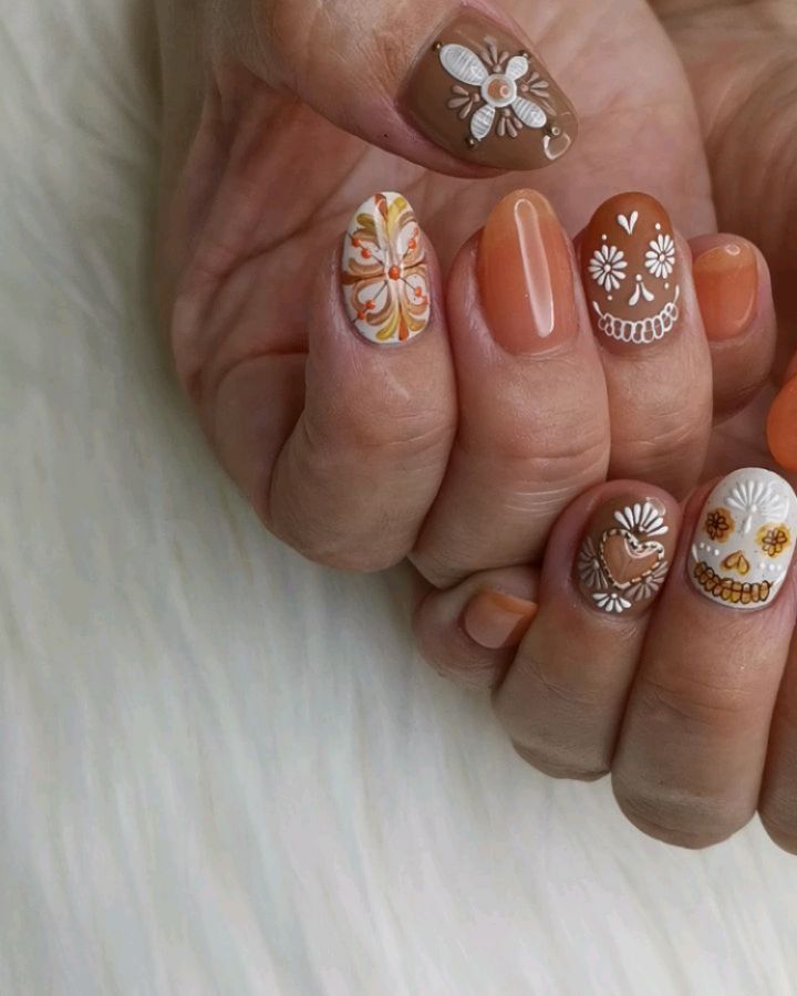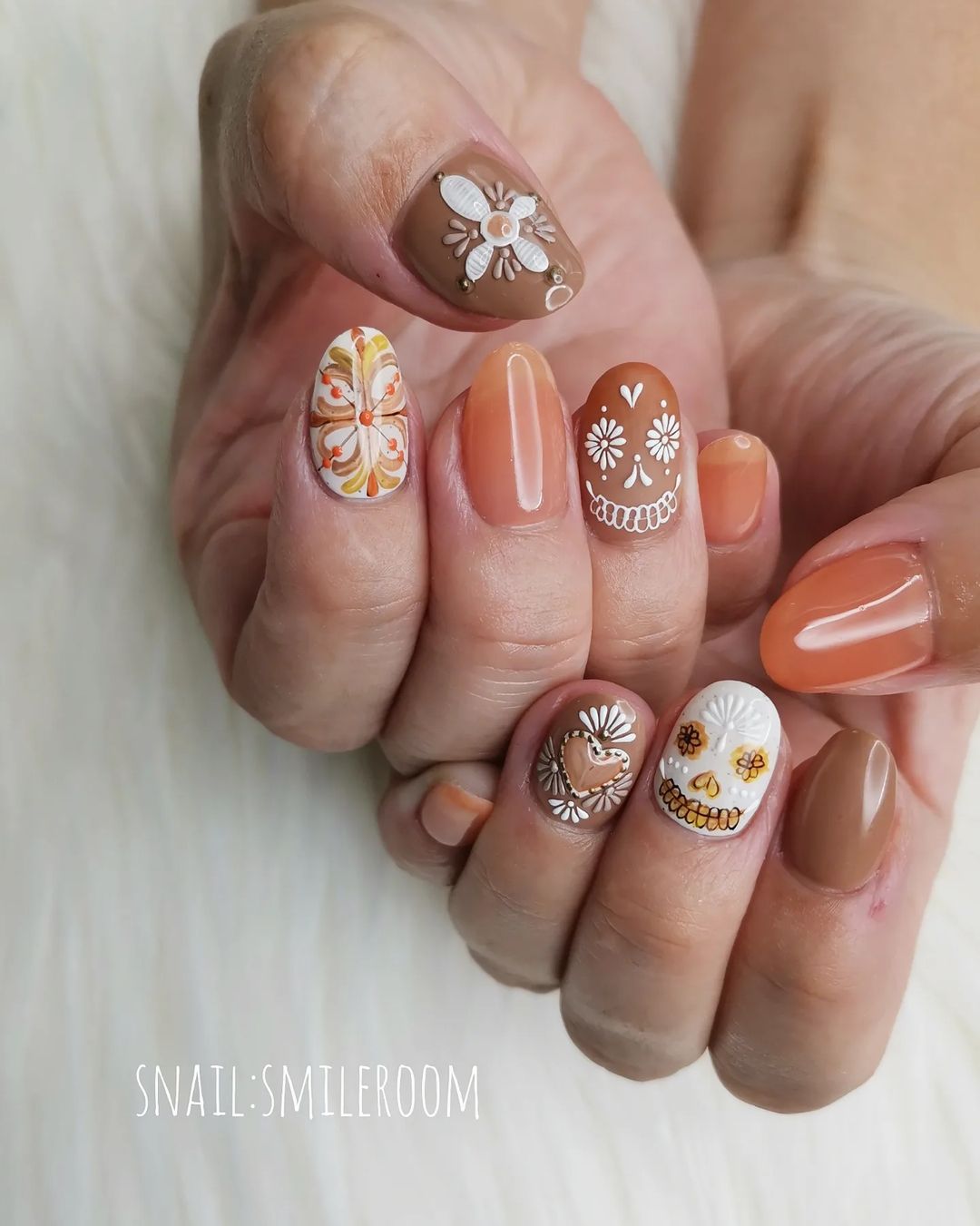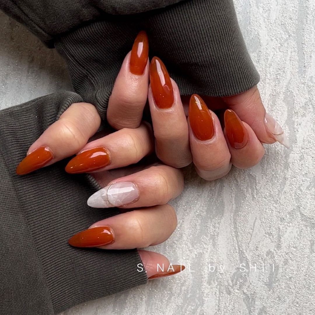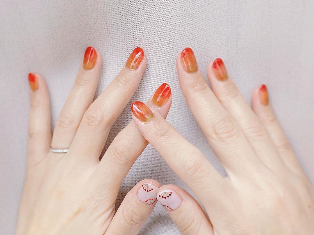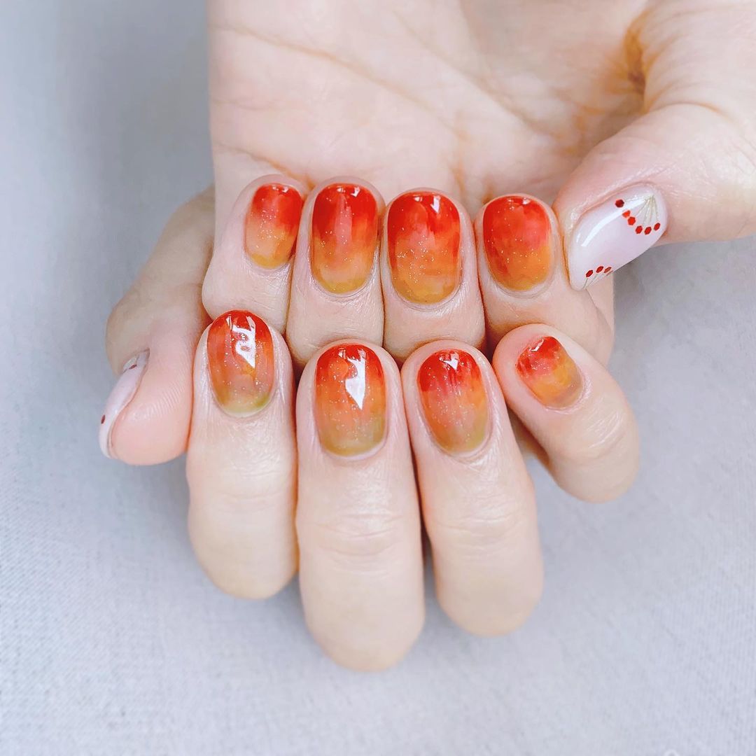 今回はオレンジ系カラーの秋ネイルデザインをご紹介します🍂