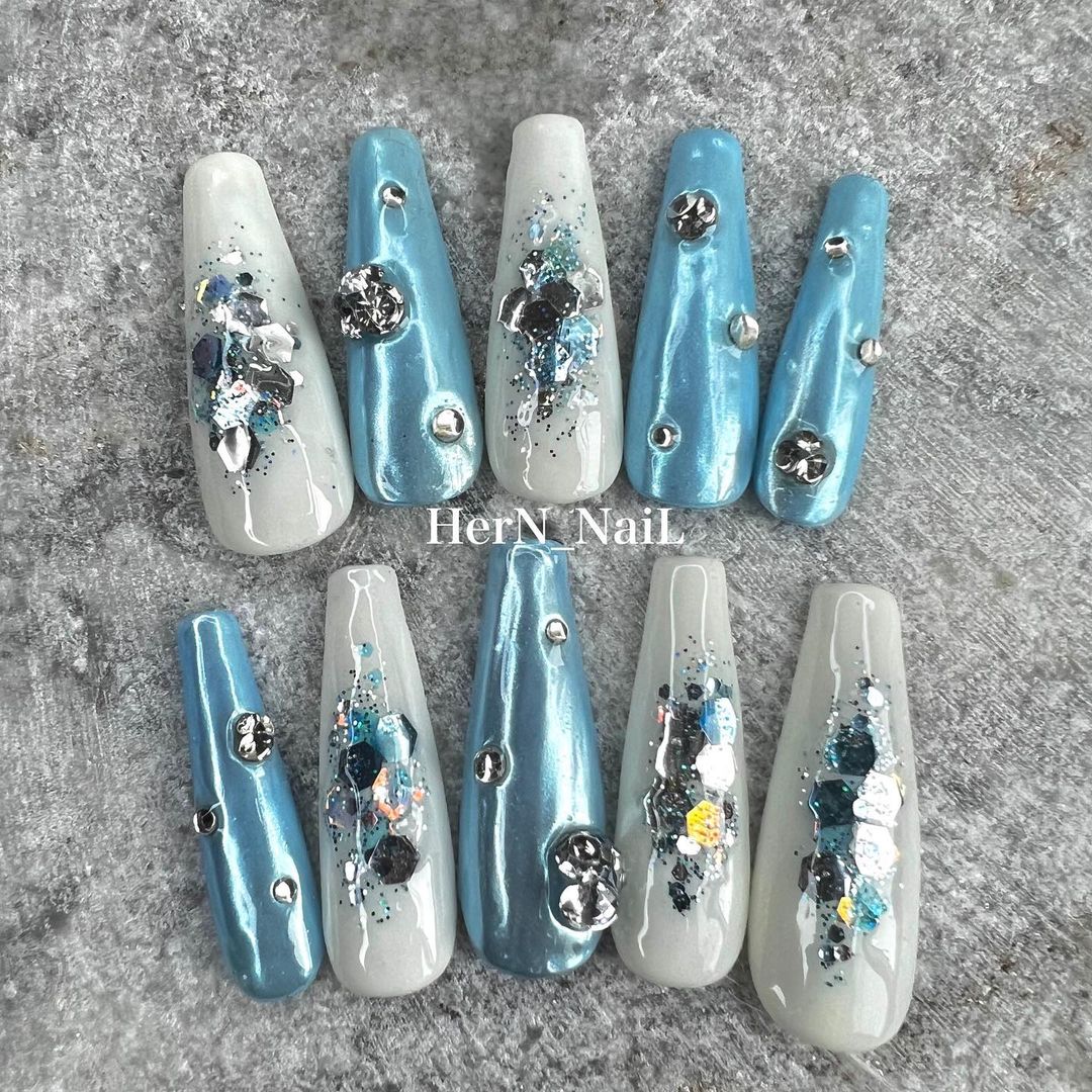 今回はホワイト系カラーの派手ネイルのデザインをご紹介します✨