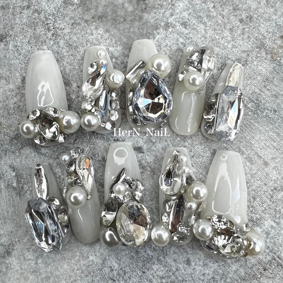 デカパーツやビジューで華やかに!Instagramで人気のホワイト系カラーの派手ネイル10選!