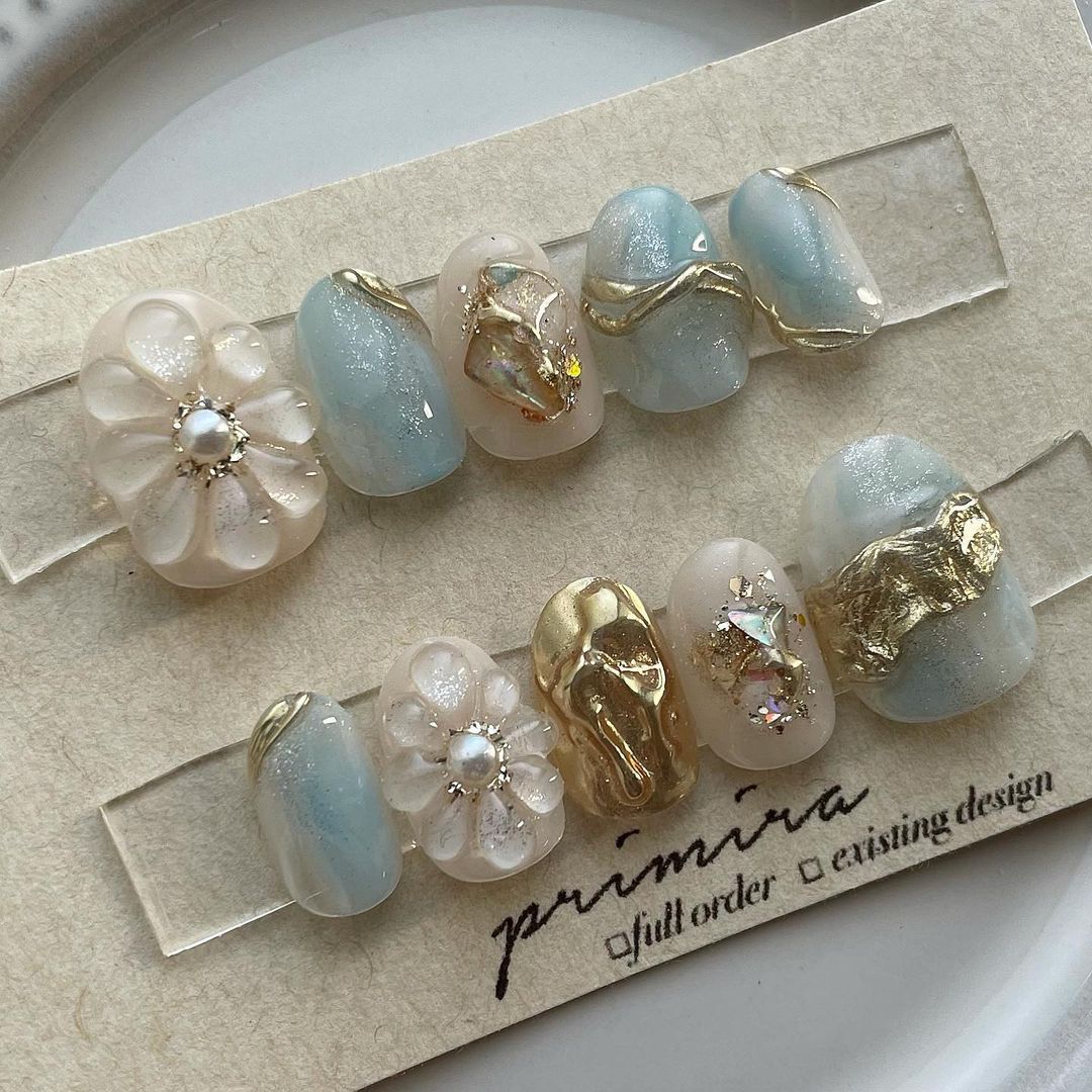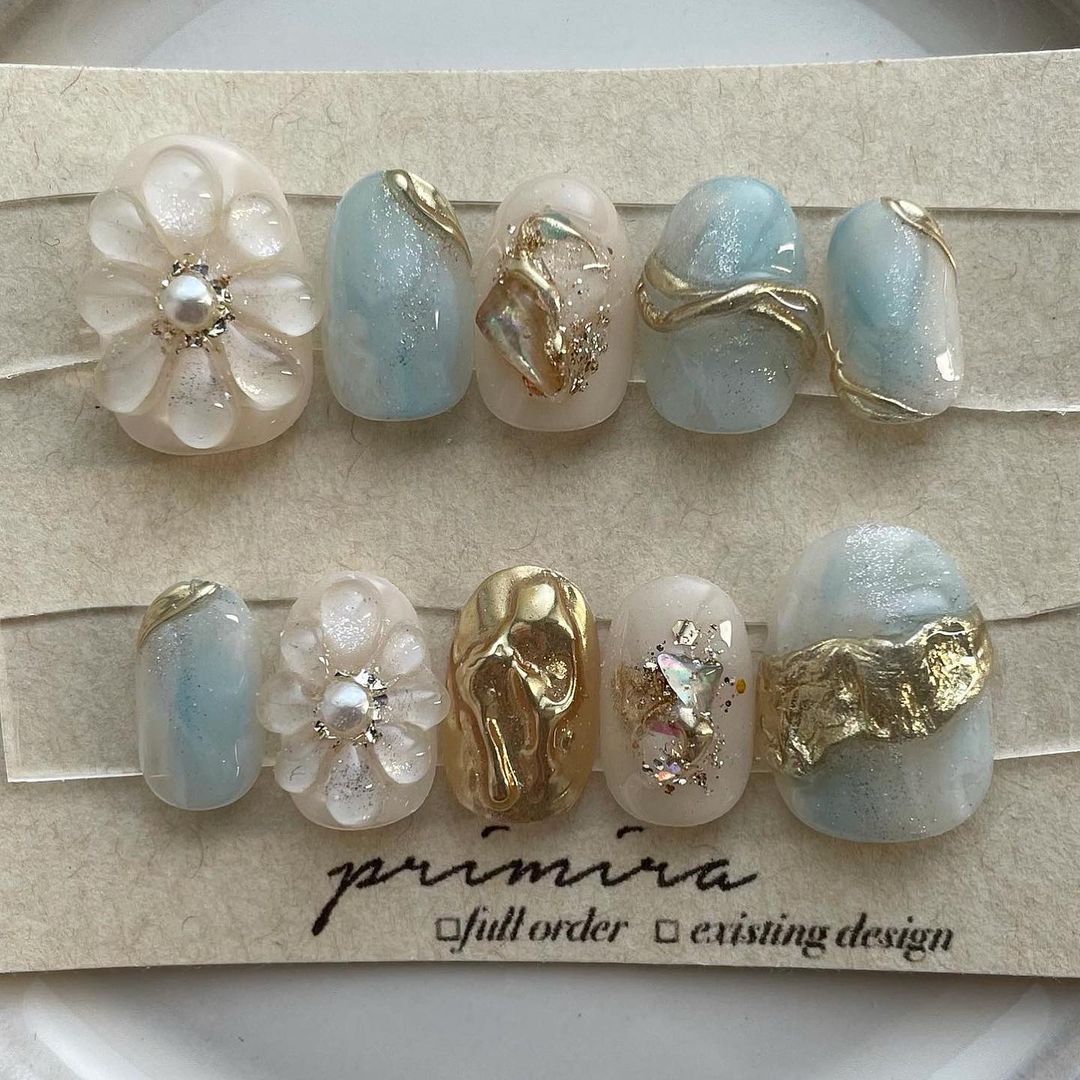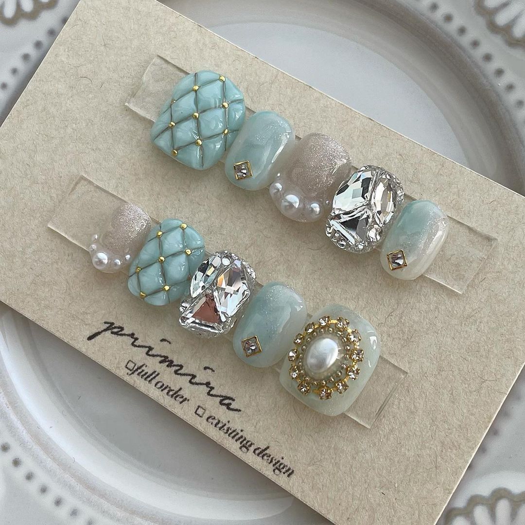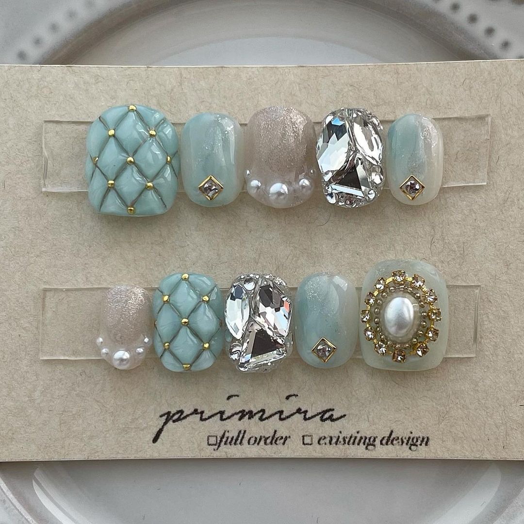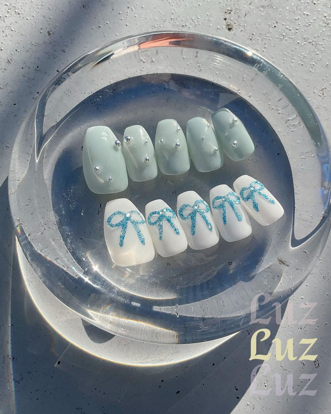 キルティング・ハート・リボンなど!水色ガーリーネイル10選!