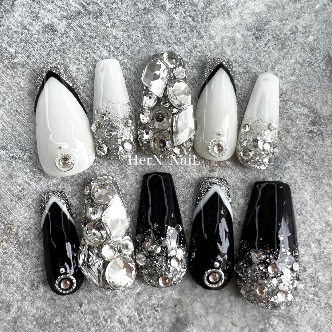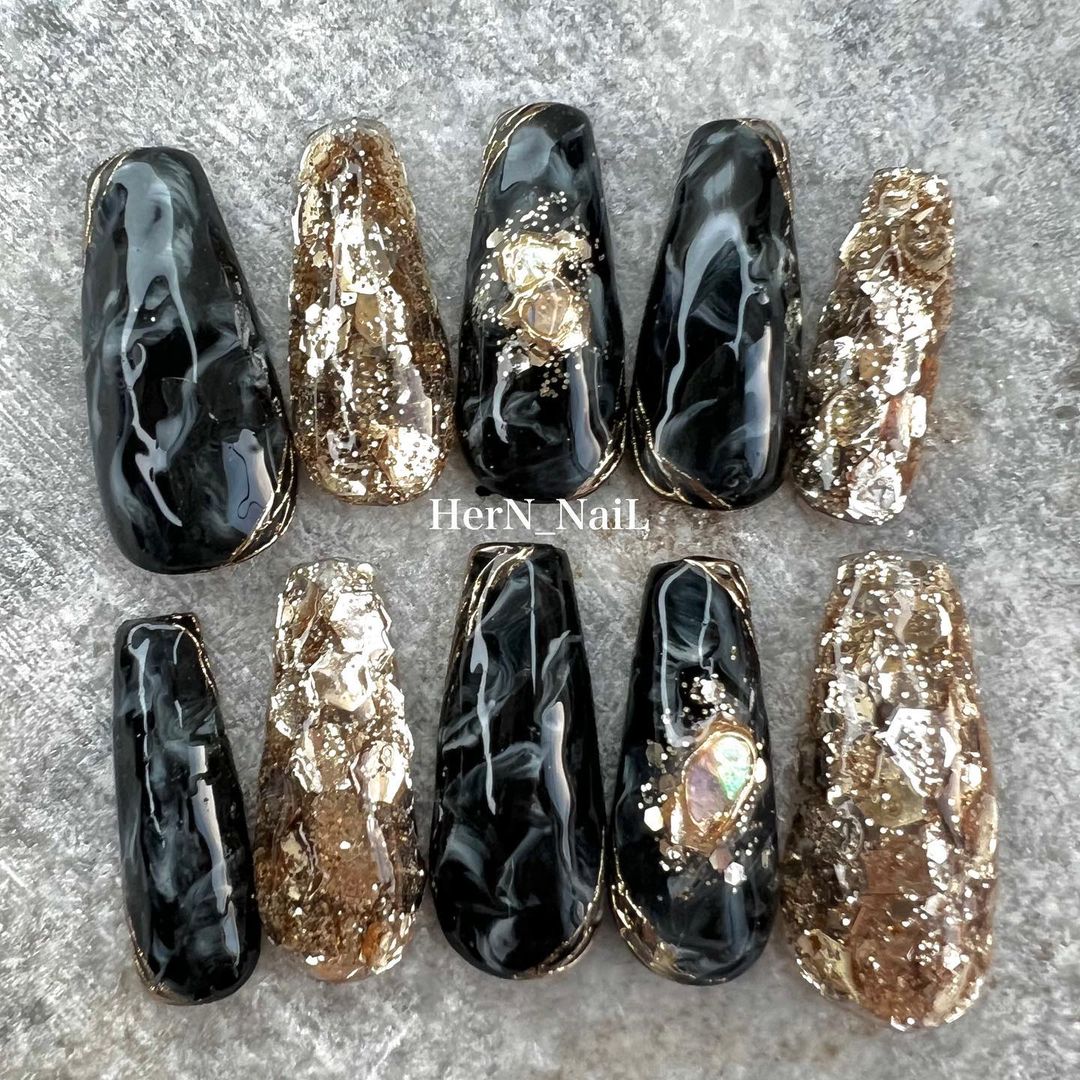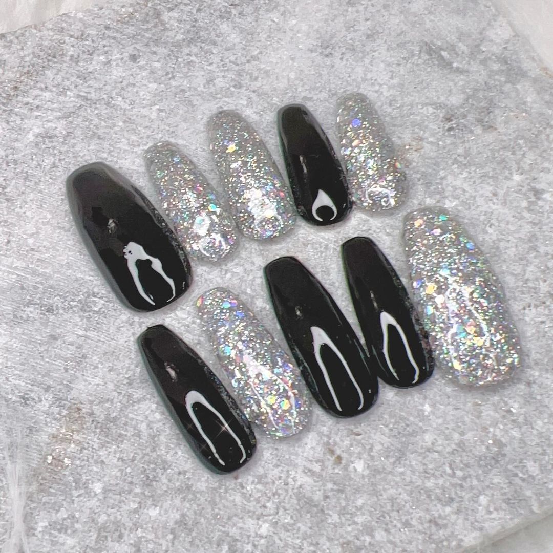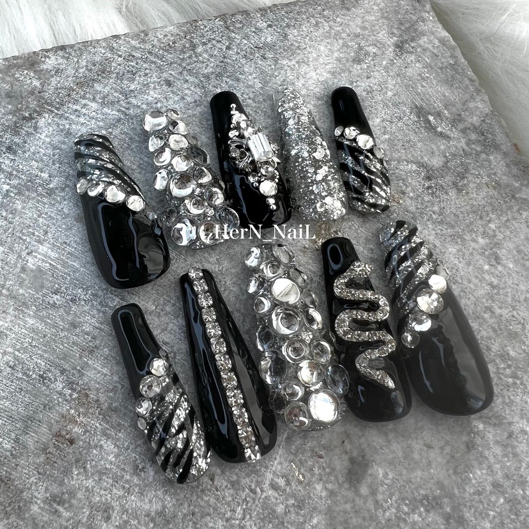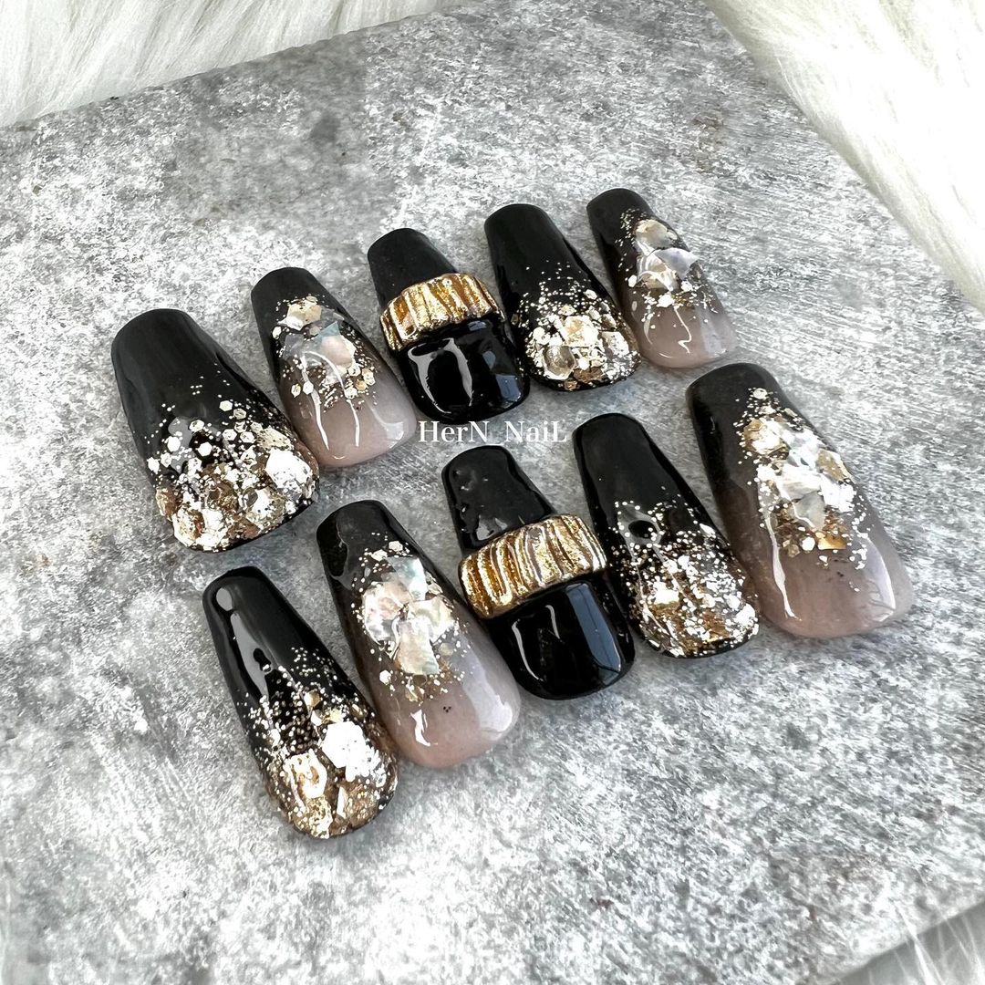 華やかなデザインに注目!きらきらかっこいいブラックネイル31選!