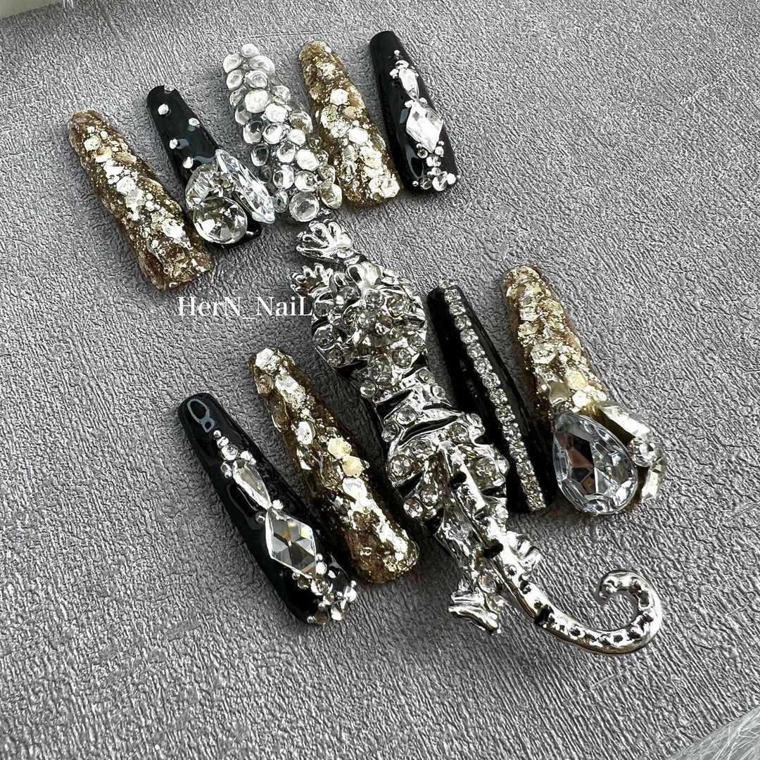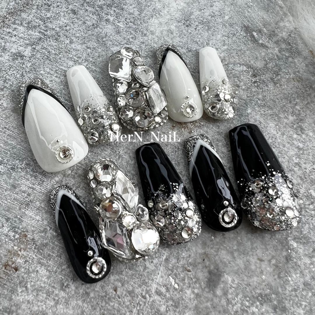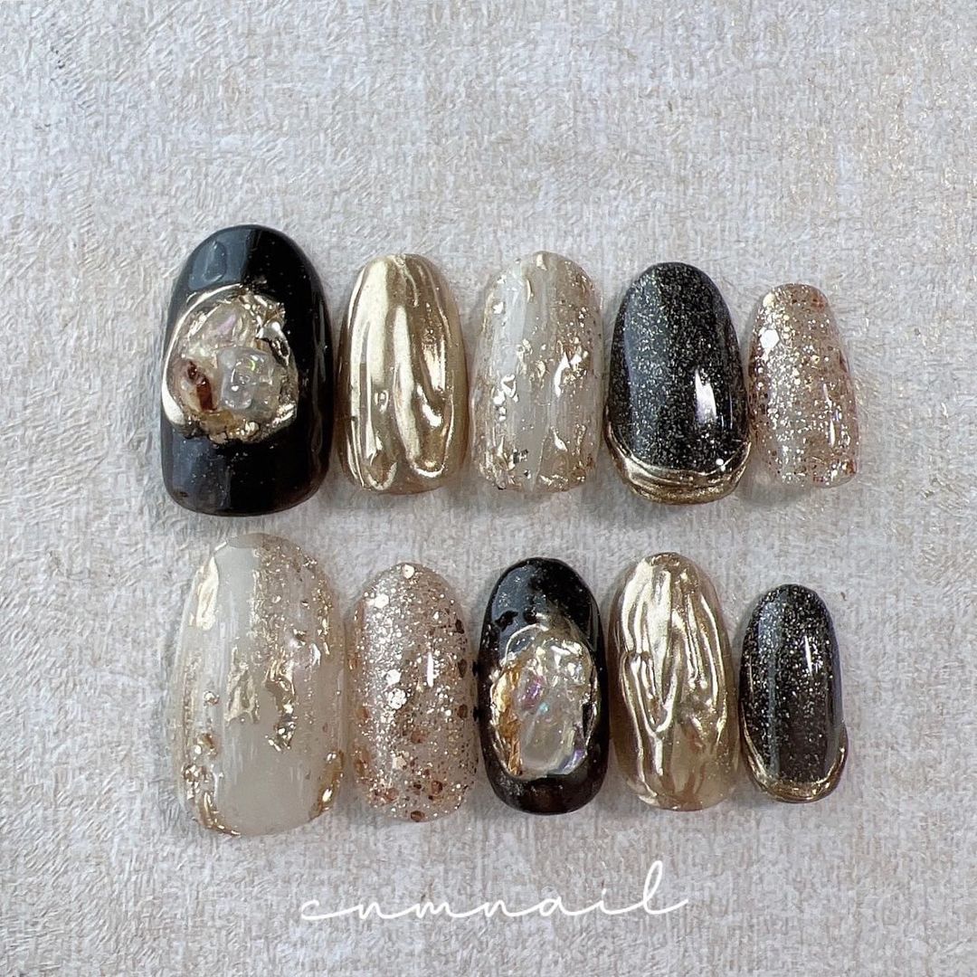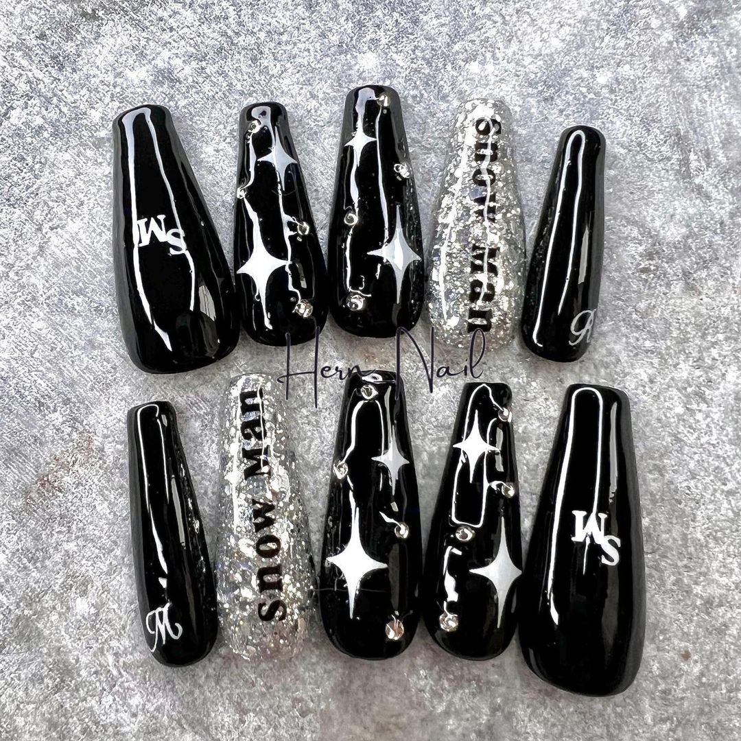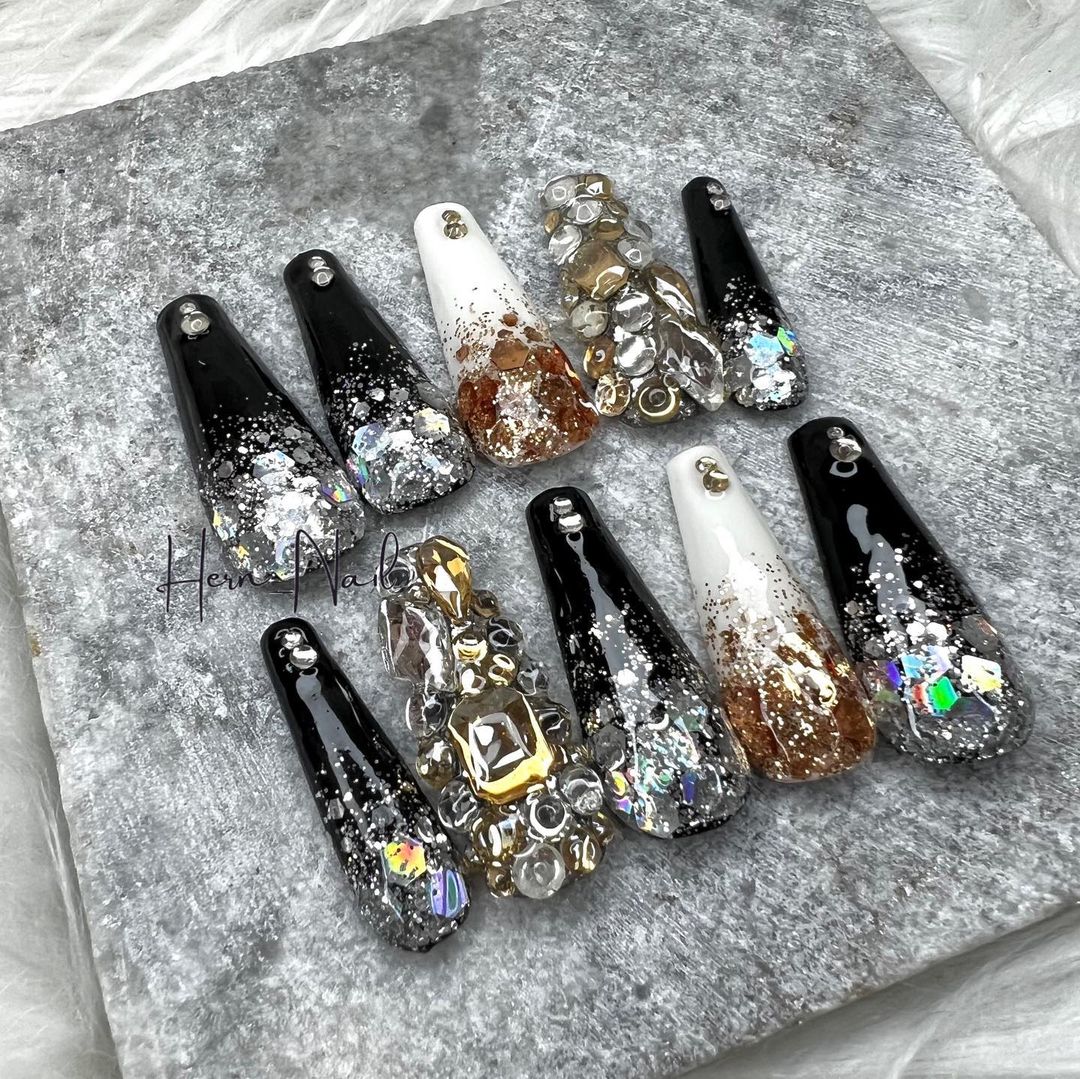 華やかなデザインに注目!きらきらかっこいいブラックネイル31選!