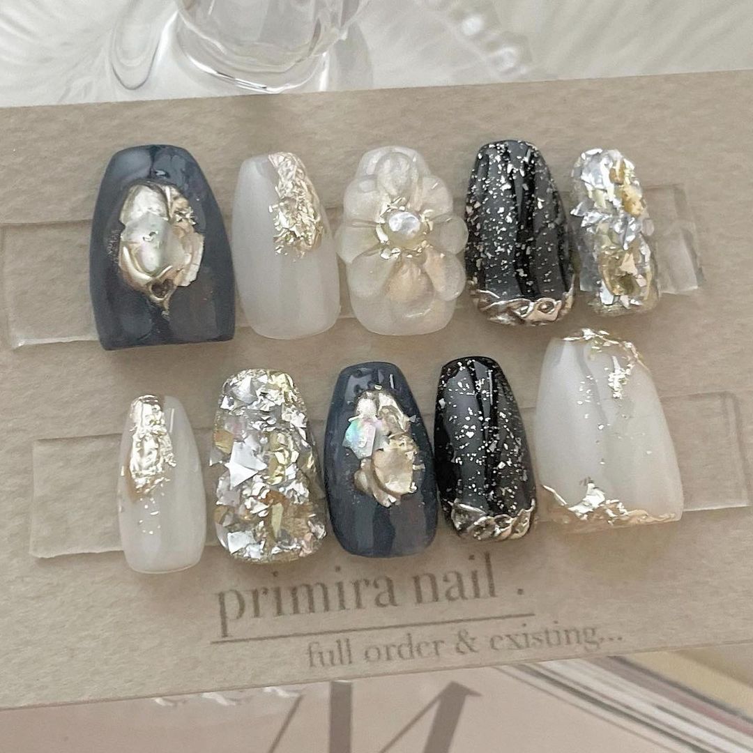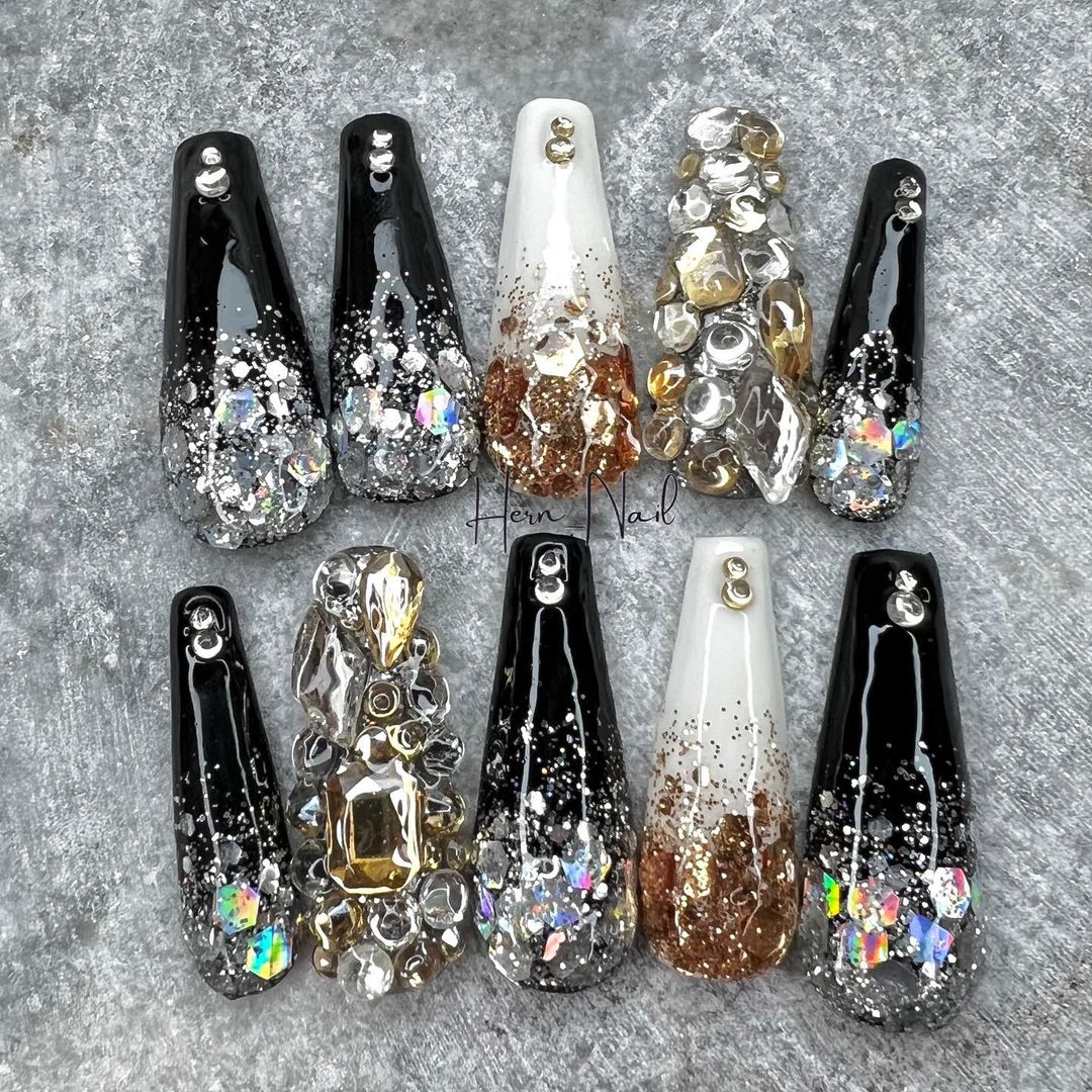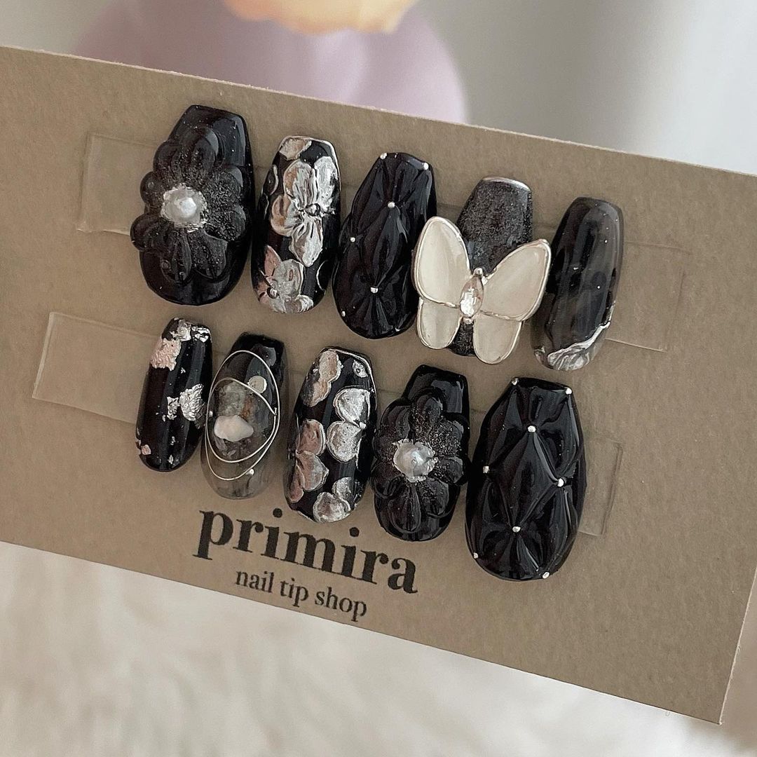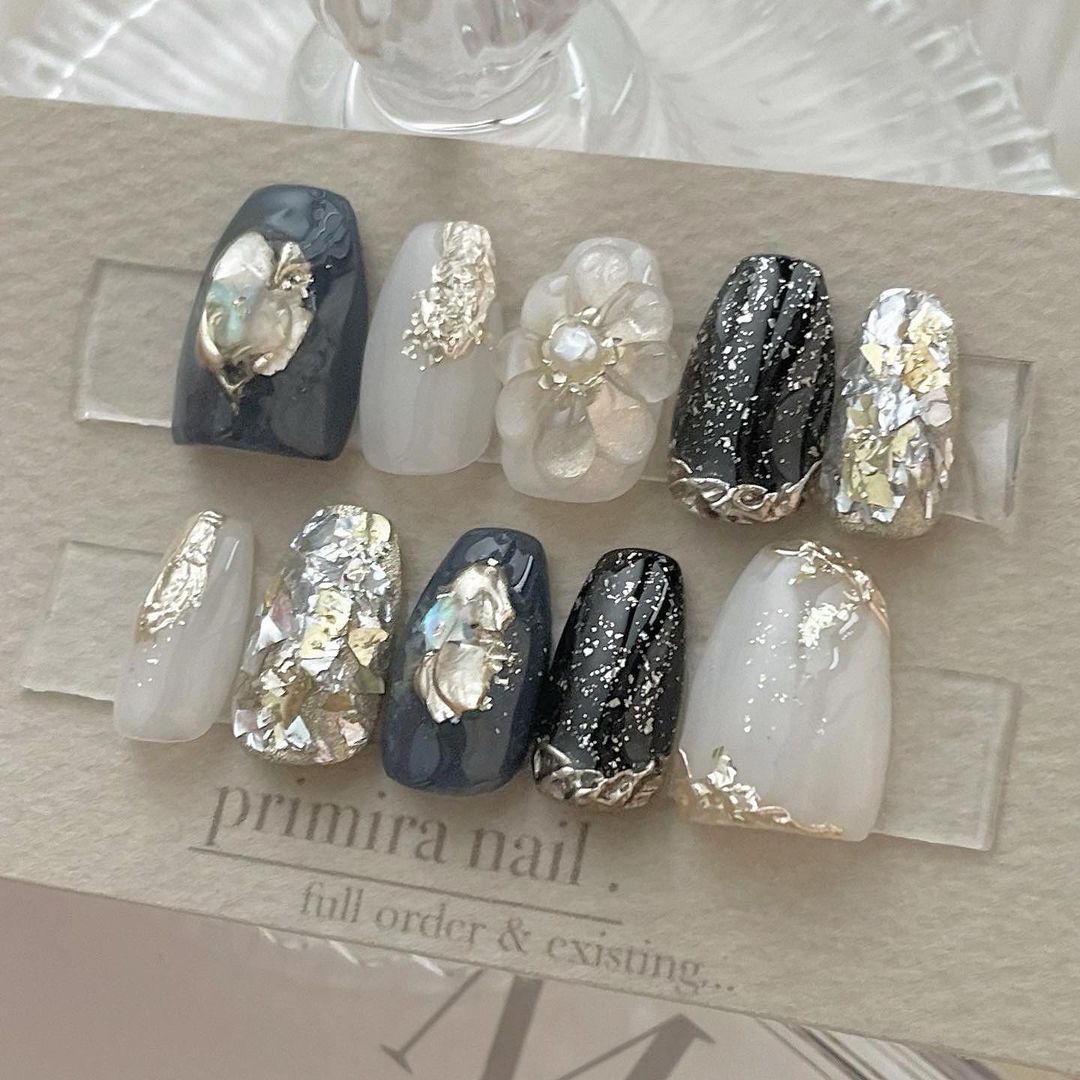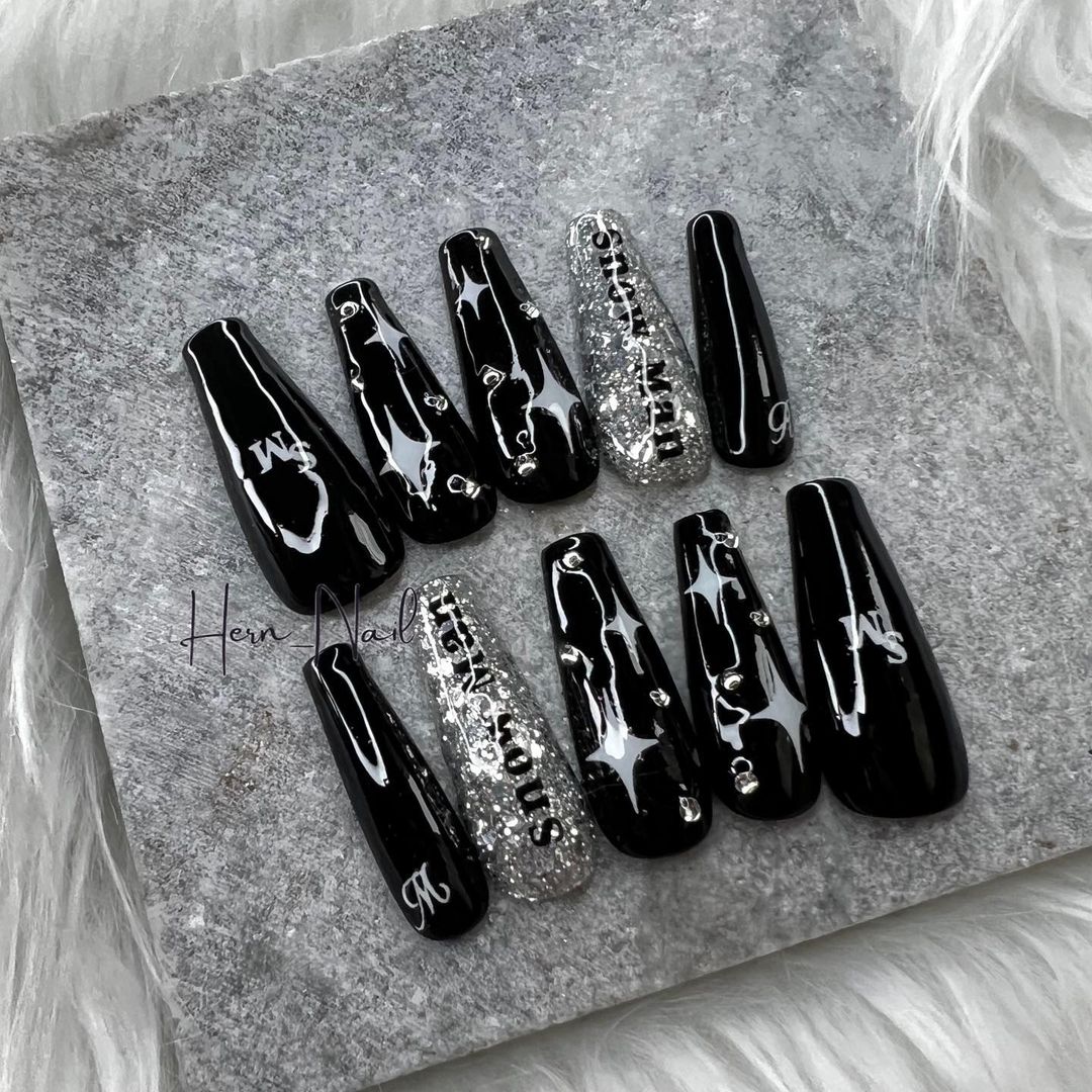 華やかなデザインに注目!きらきらかっこいいブラックネイル31選!
