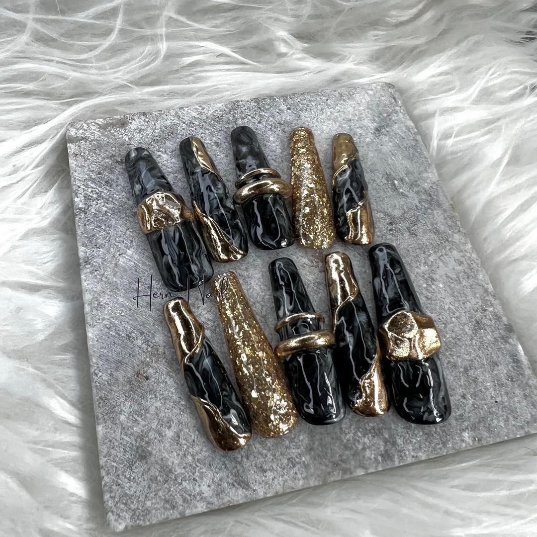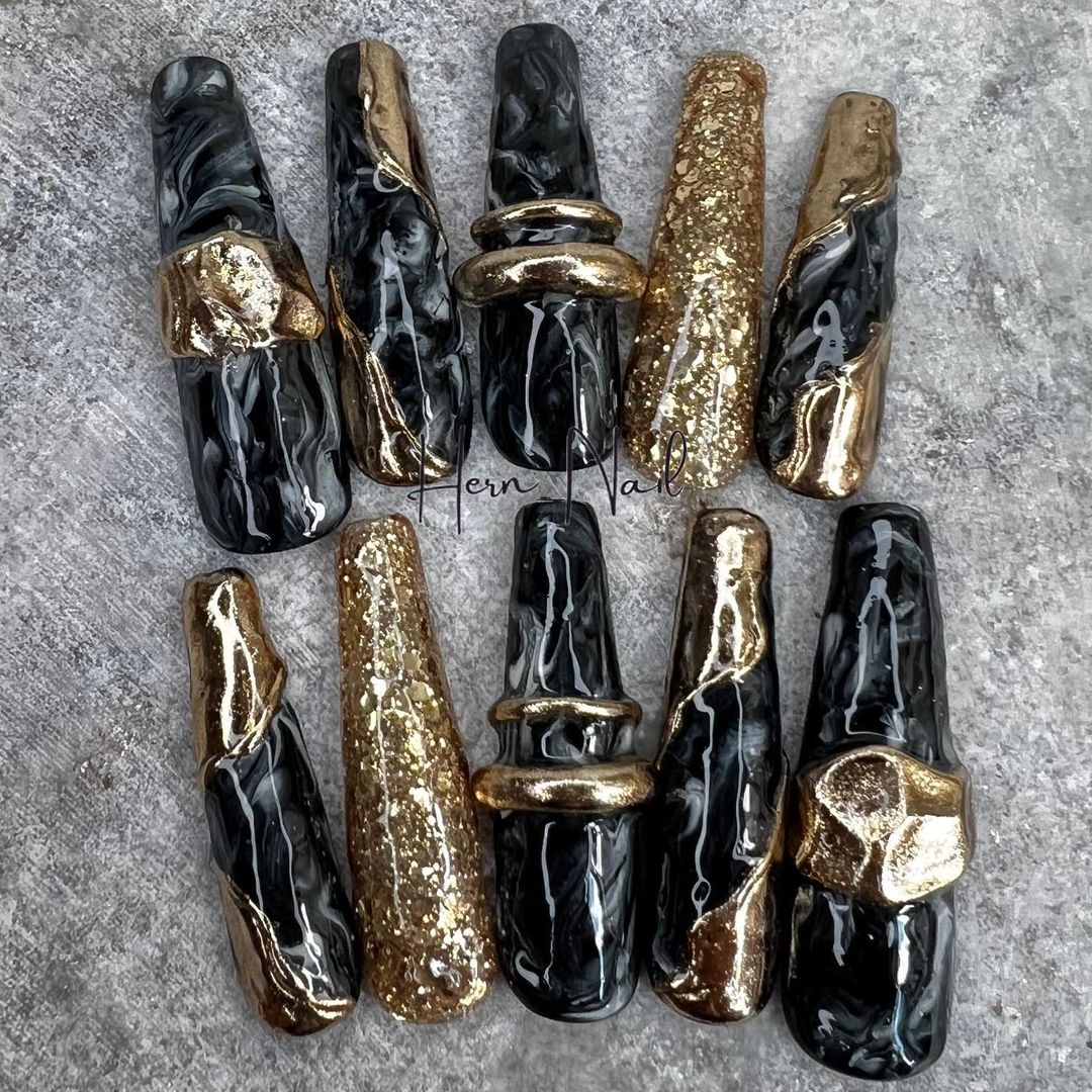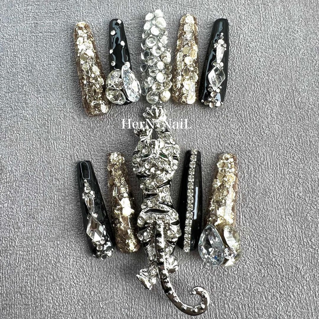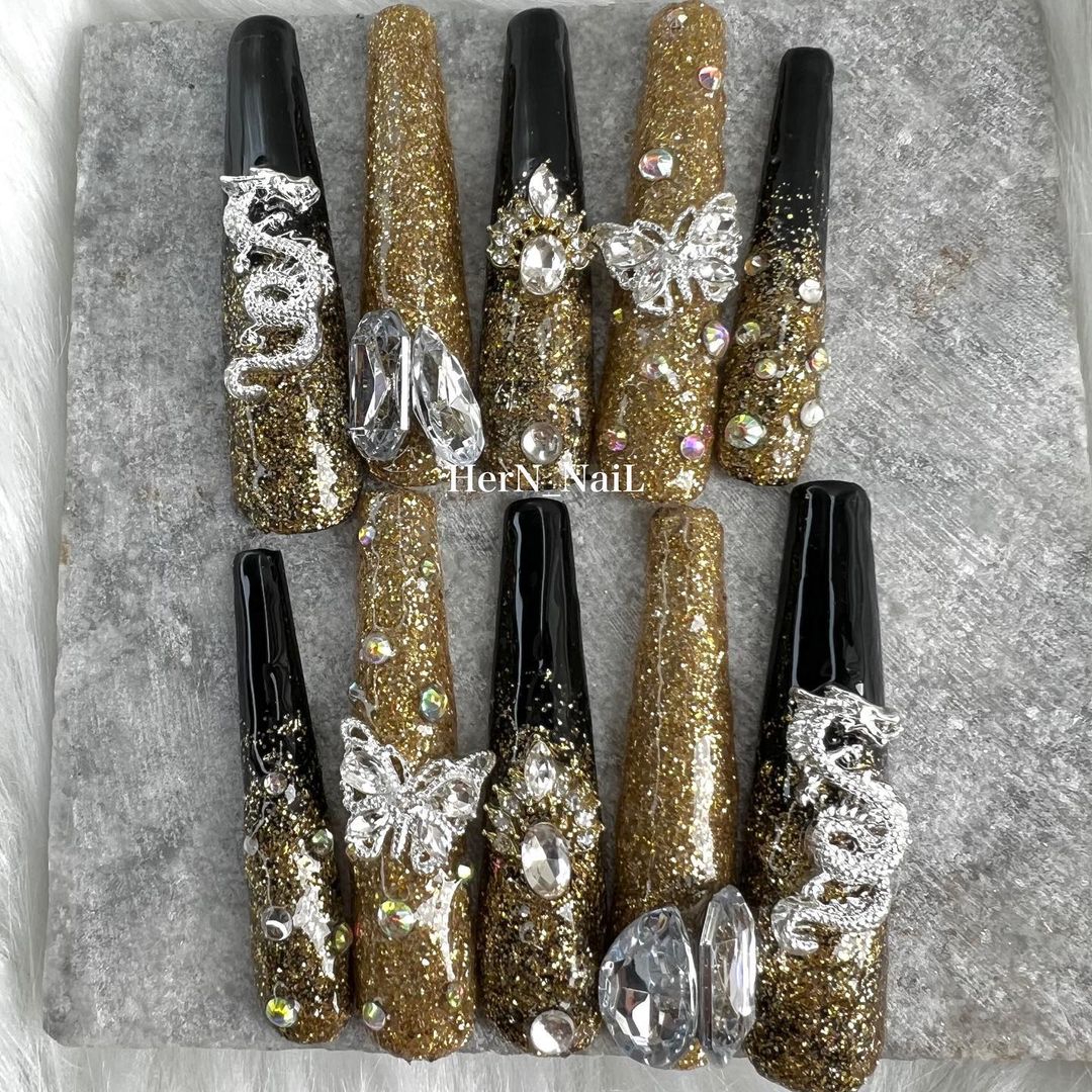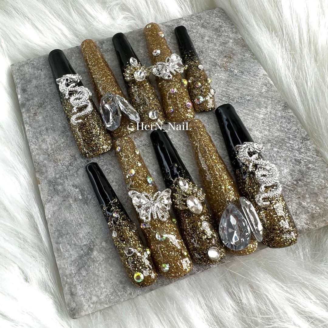 華やかなデザインに注目!きらきらかっこいいブラックネイル31選!
