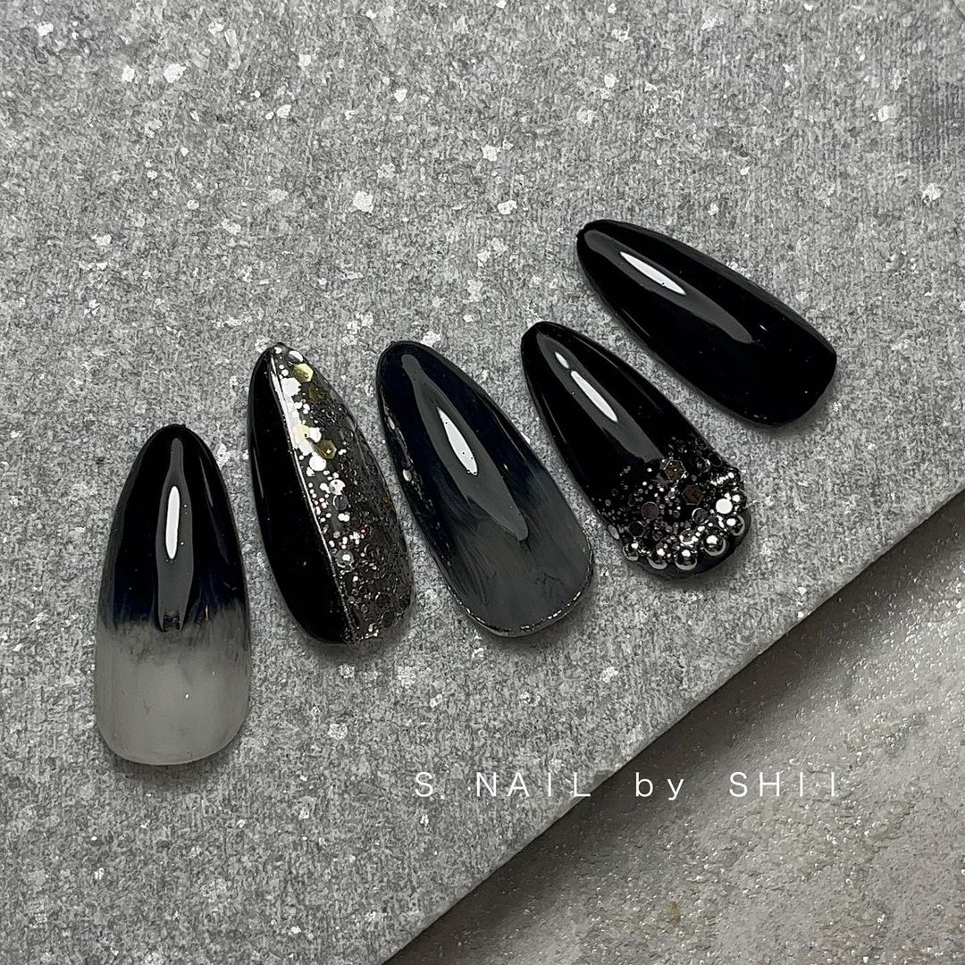 今回はきらきらかっこいいブラックネイルをご紹介します!