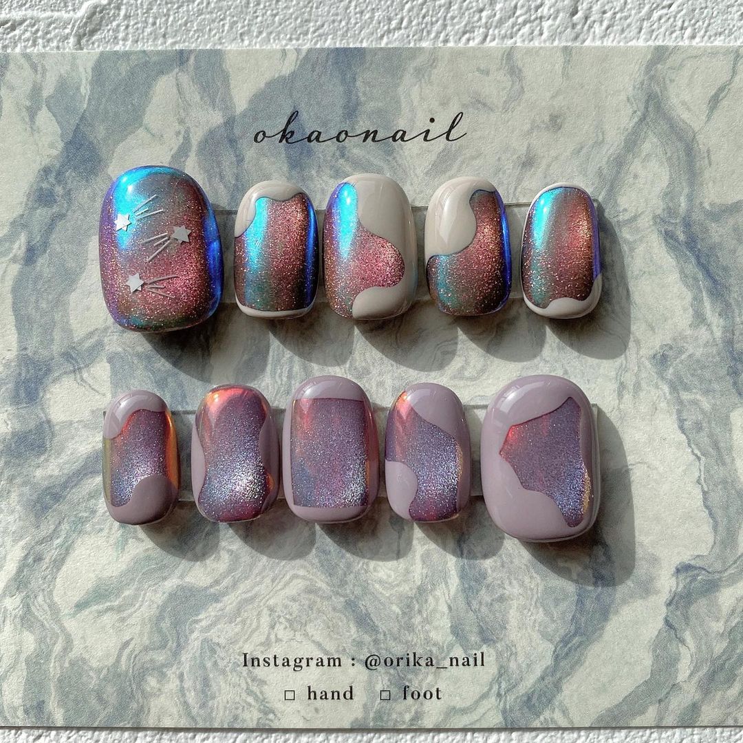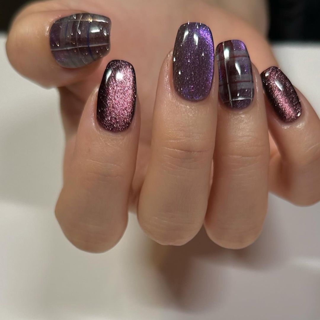 今回はパープル系カラーのマグネットネイルデザインをご紹介します!