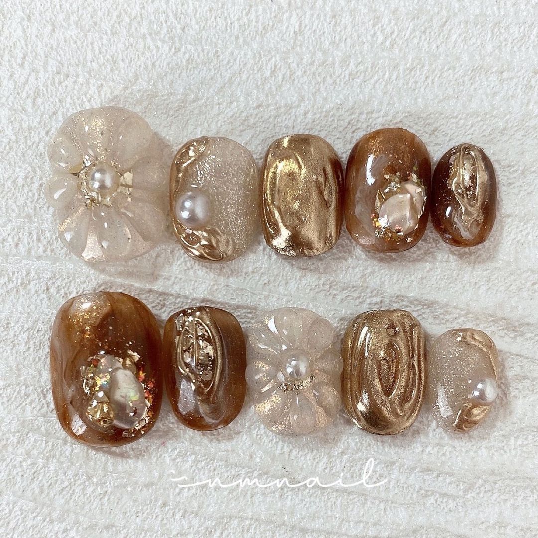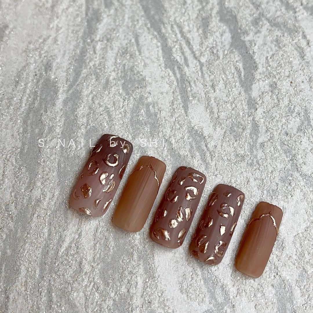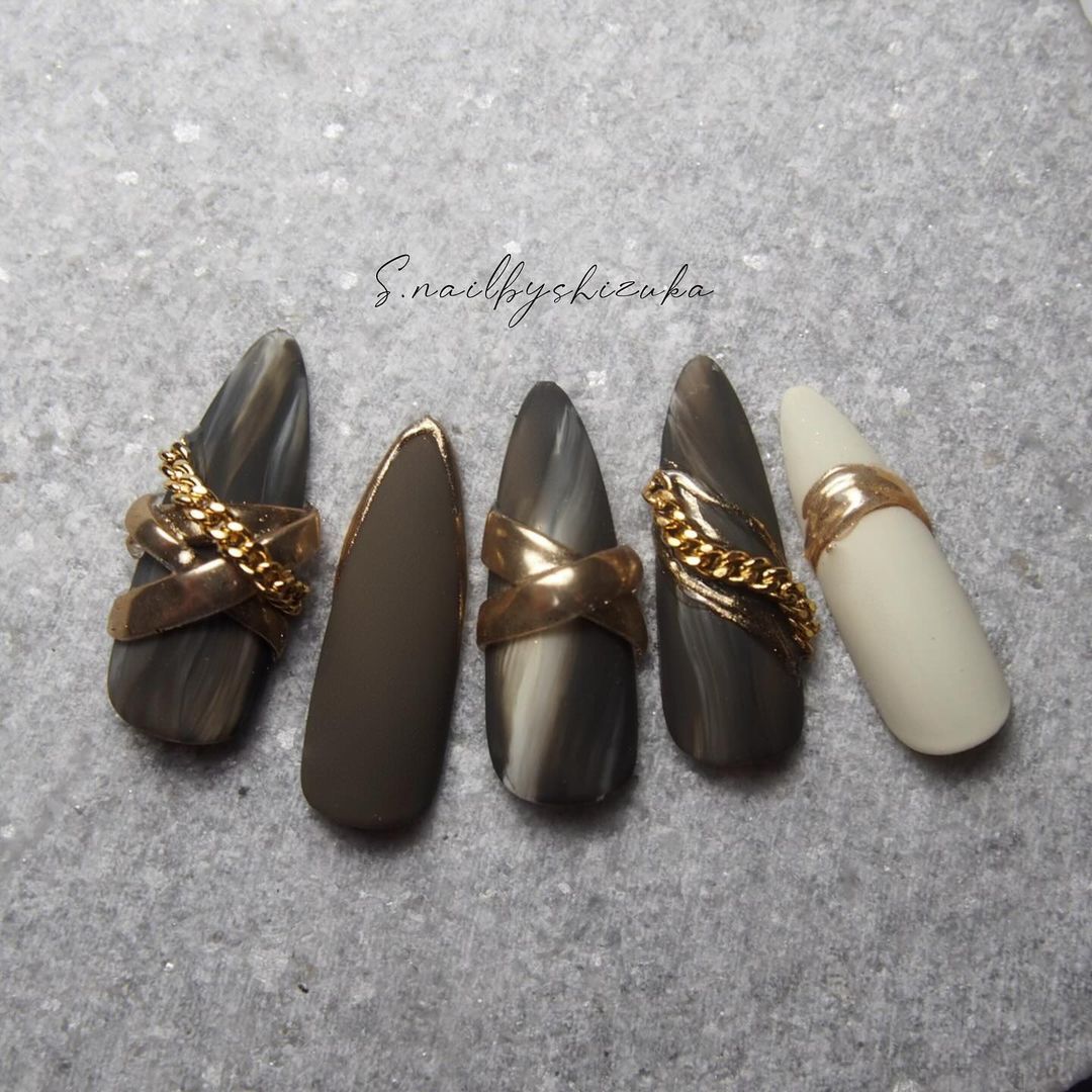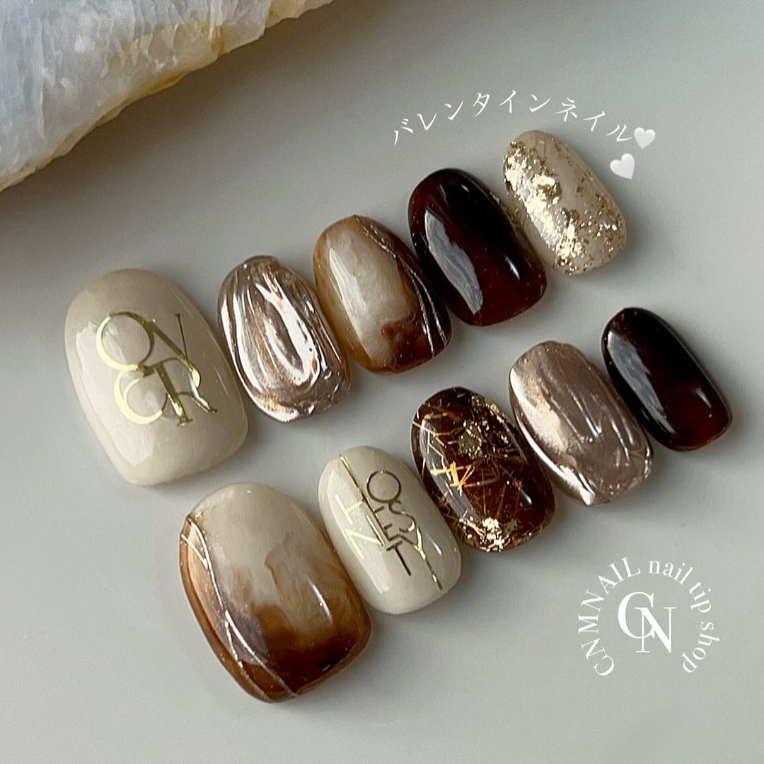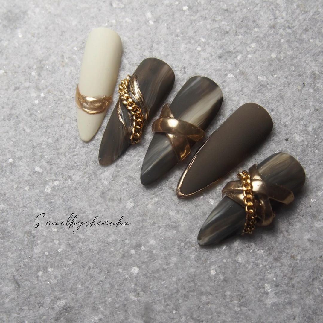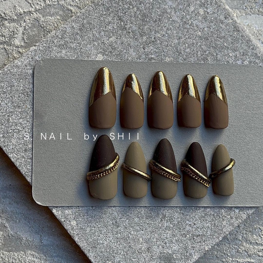 ブラウン系カラーのベースに、ゴールドなどのミラーを使ったネイルデザインを集めましたので、ぜひ参考にしてくださいね💅🏻