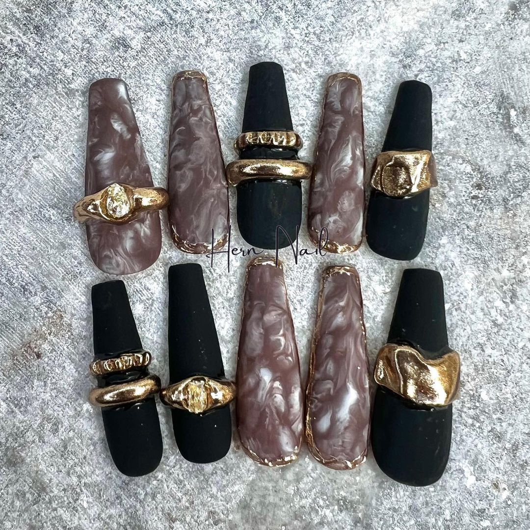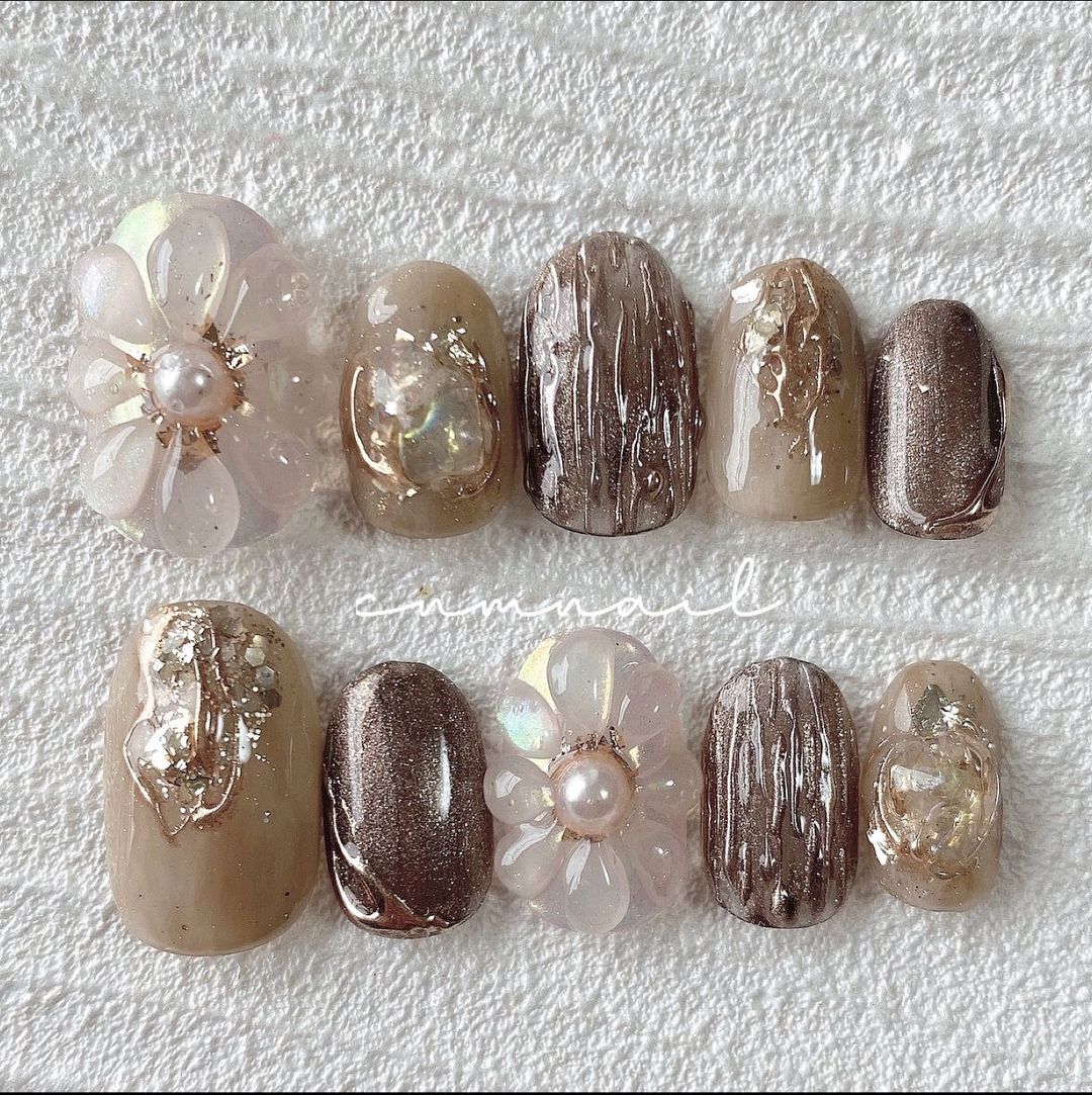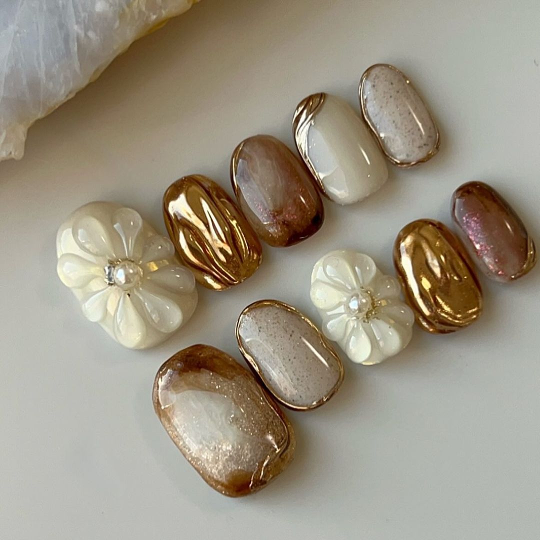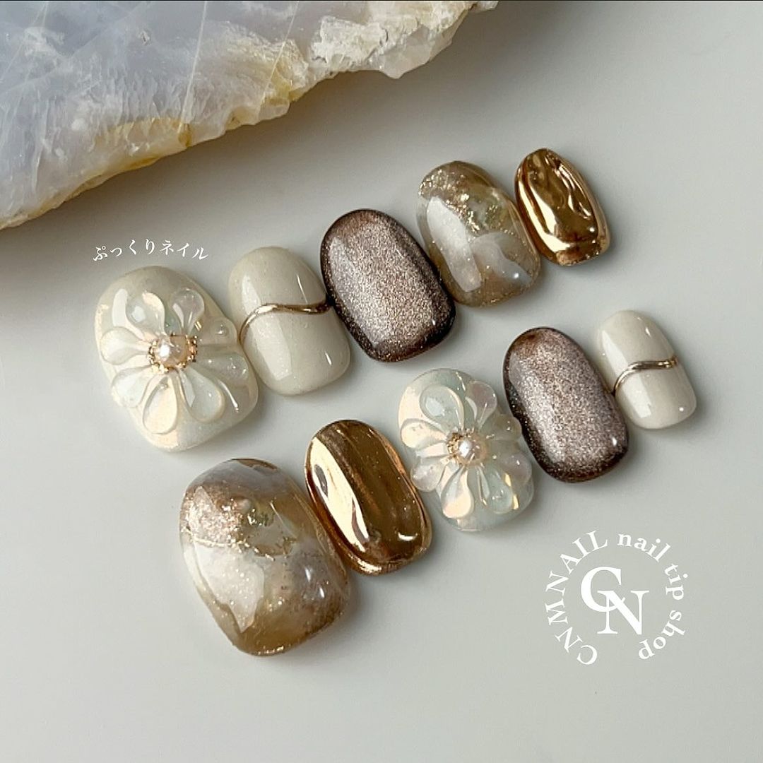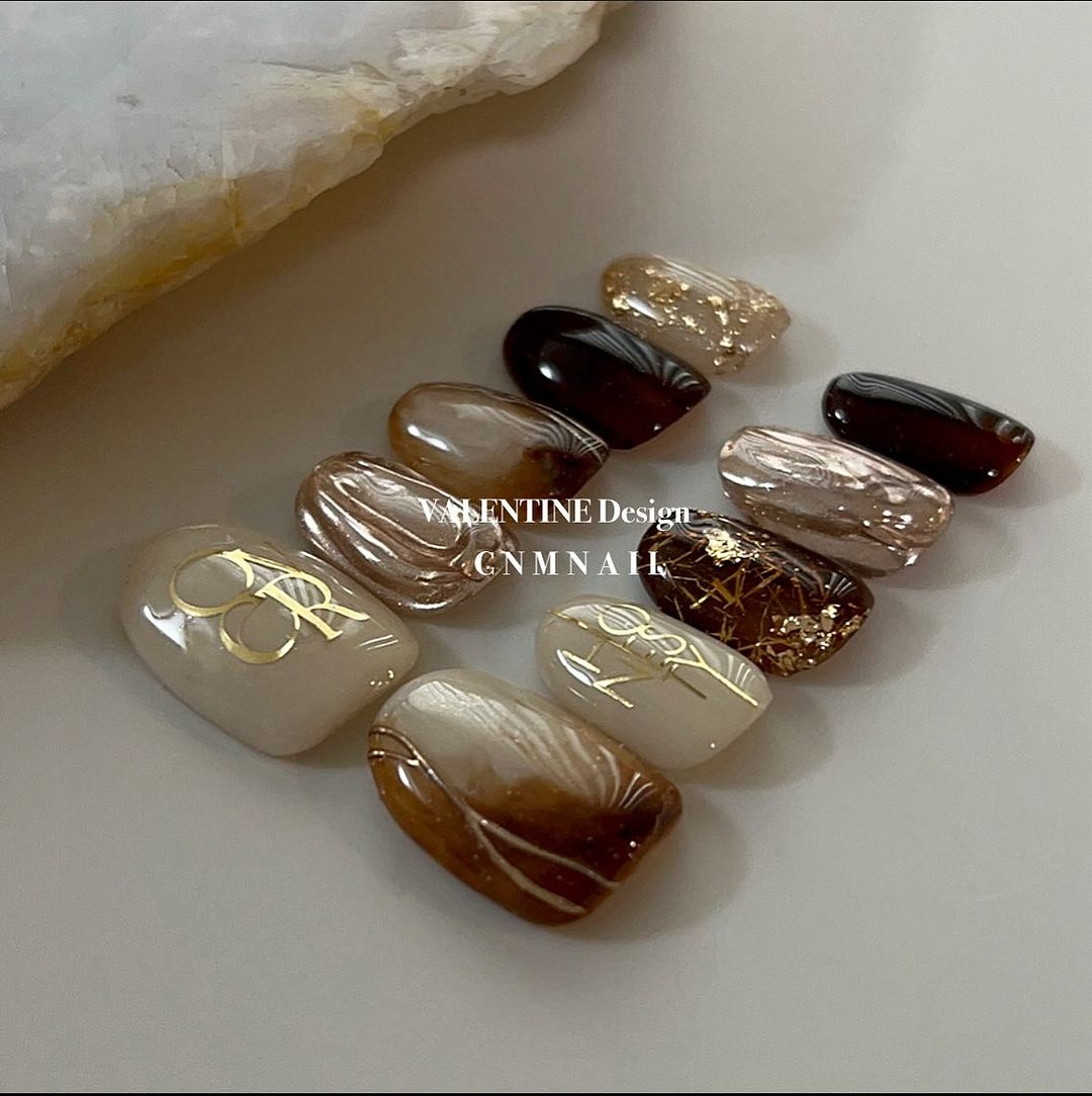 ブラウン系カラーのベースに、ゴールドなどのミラーを使ったネイルデザインを集めましたので、ぜひ参考にしてくださいね💅🏻
