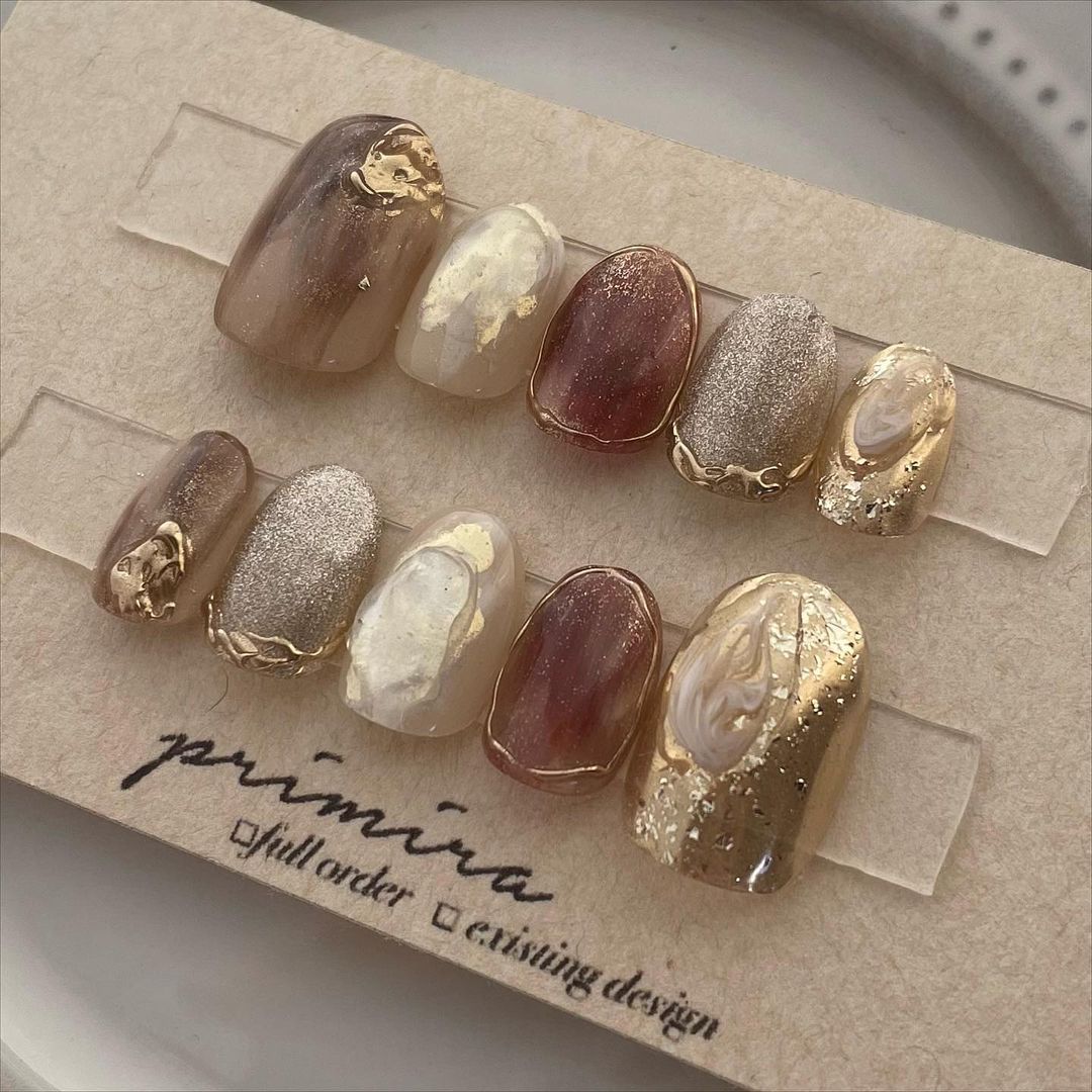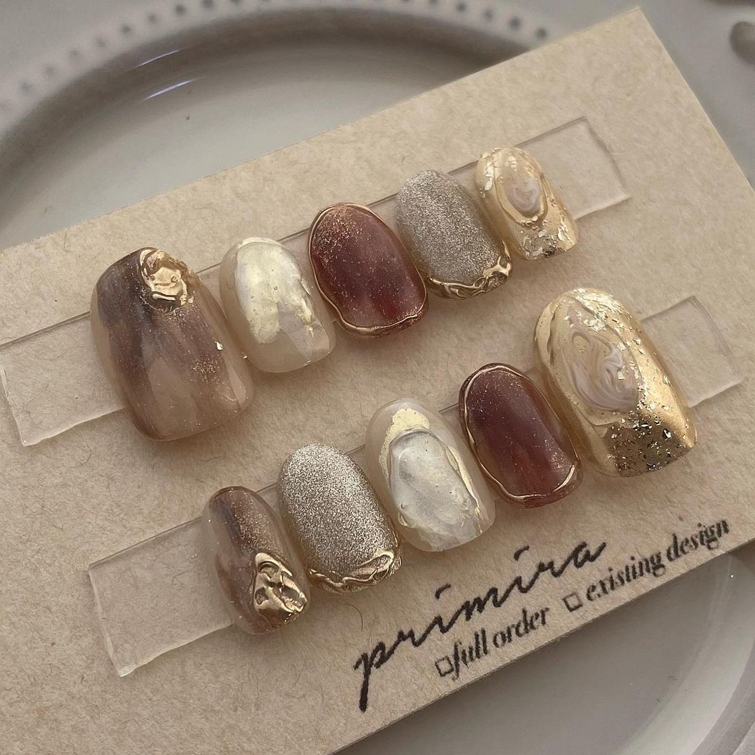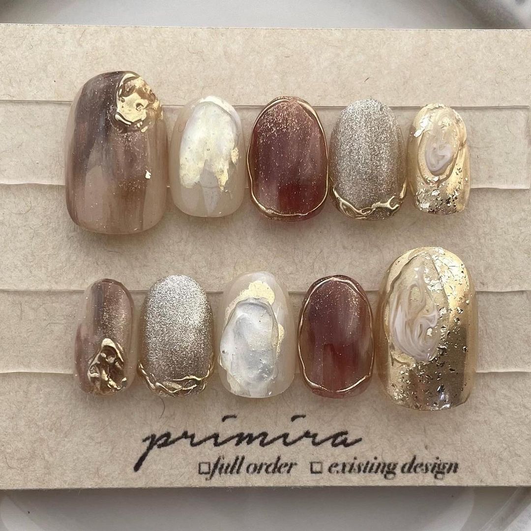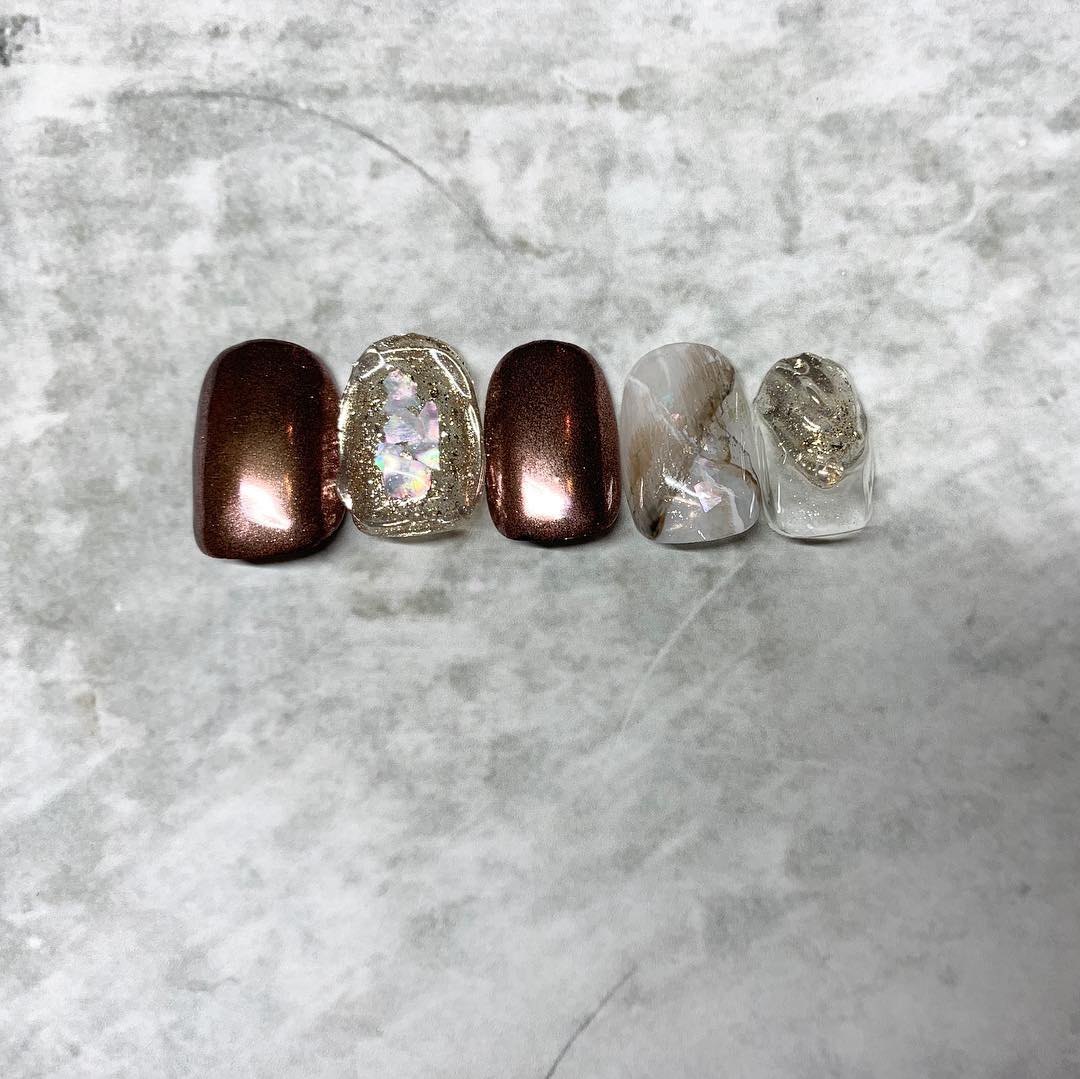 ブラウン系カラーのベースにミラーを使ったデザインや、ブラウンミラーを使ったデザインなどを集めましたので、ぜひ参考にしてくださいね💅🏻