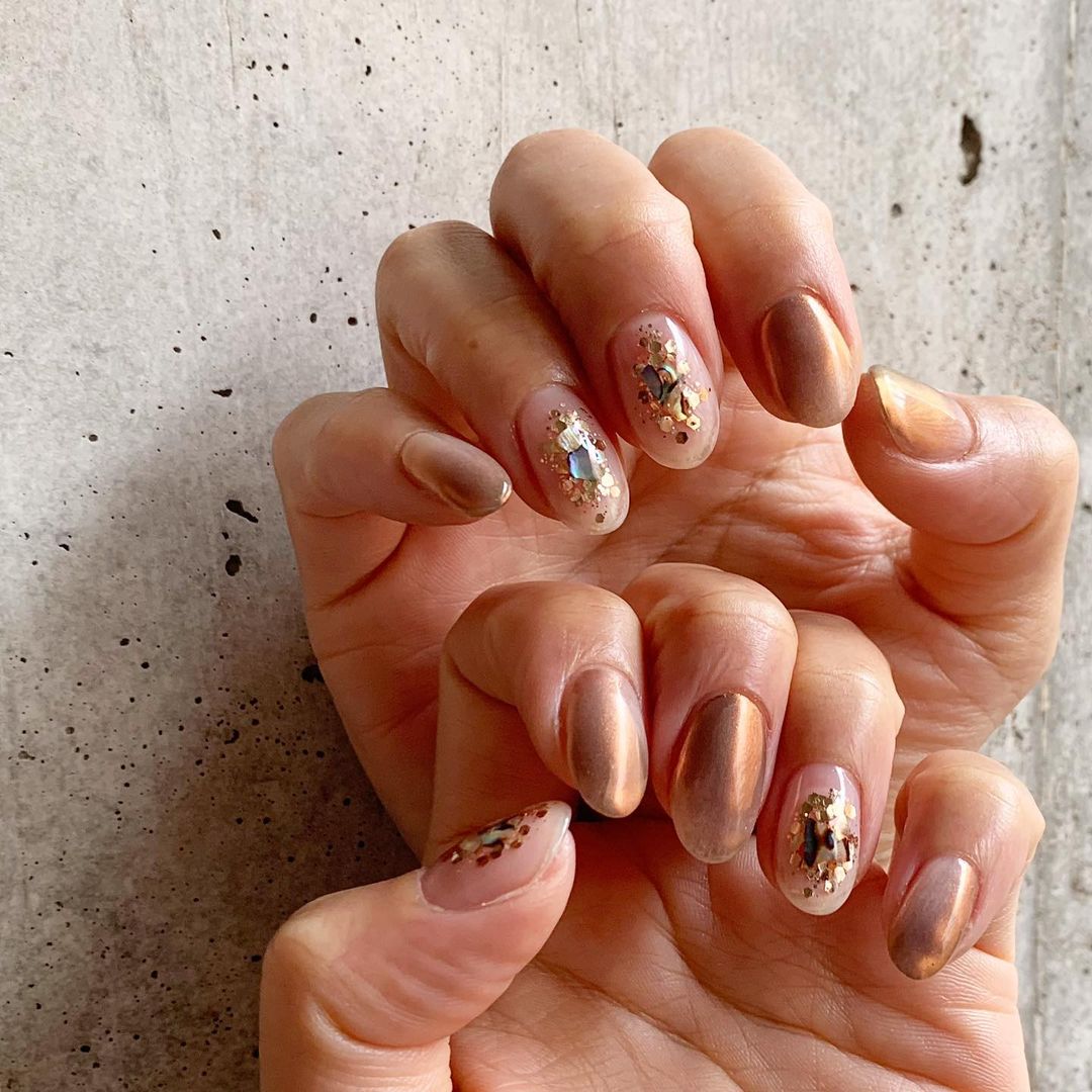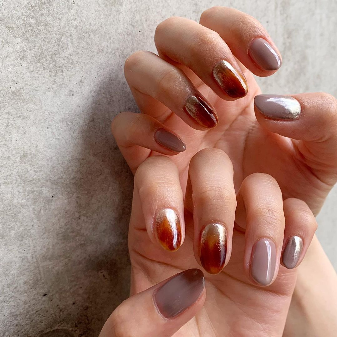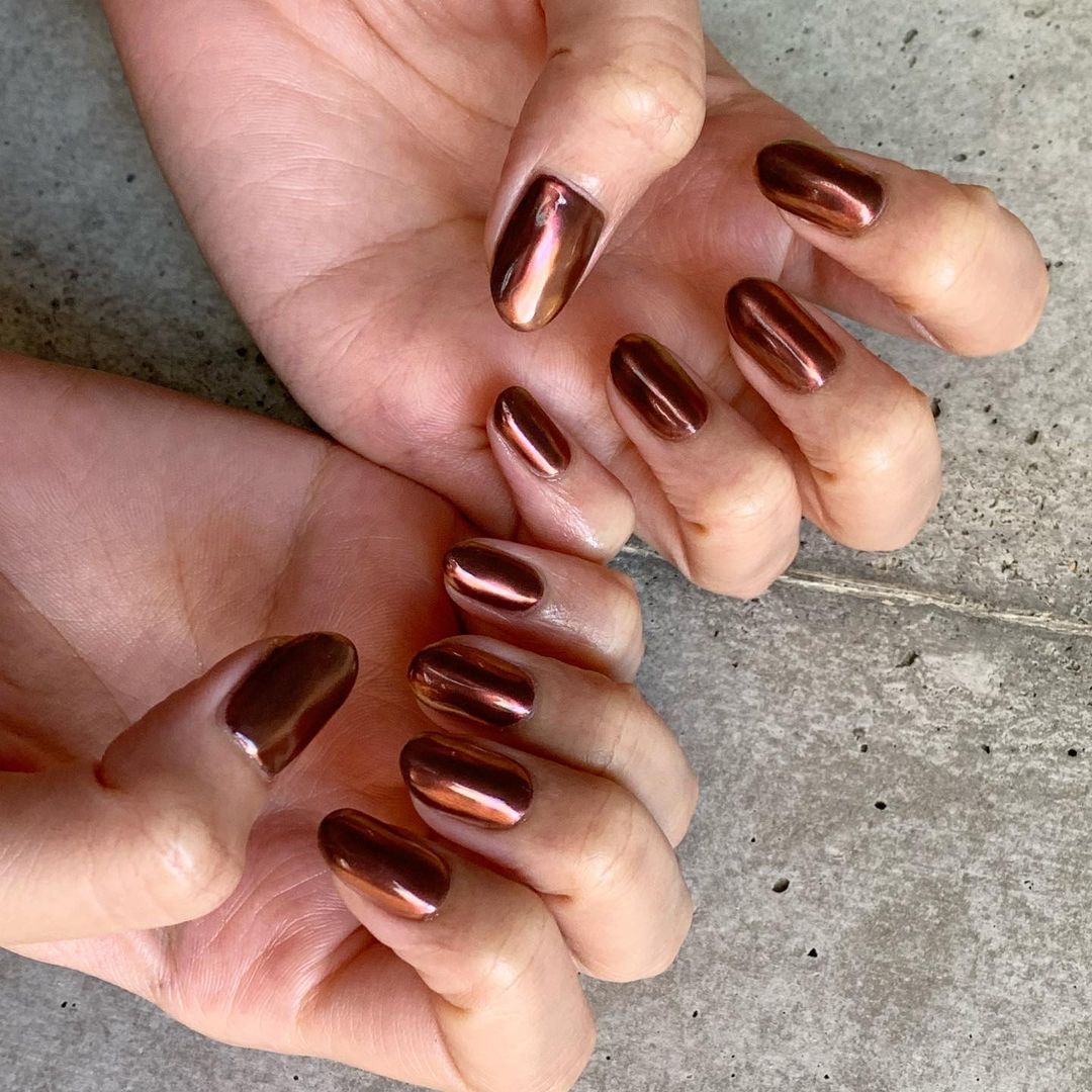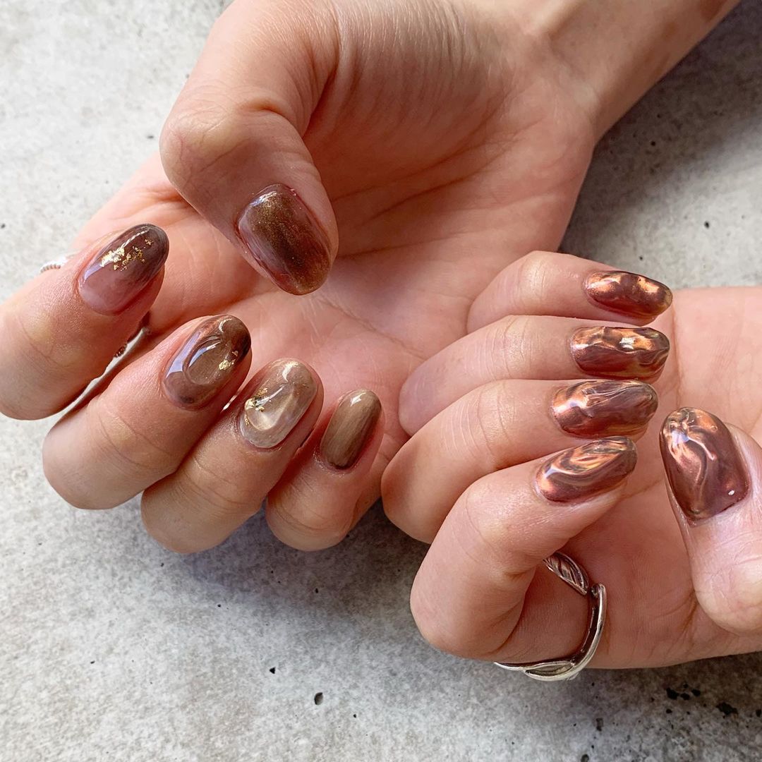 個性派からシンプルまで!ブラウン系ミラーネイル22選!