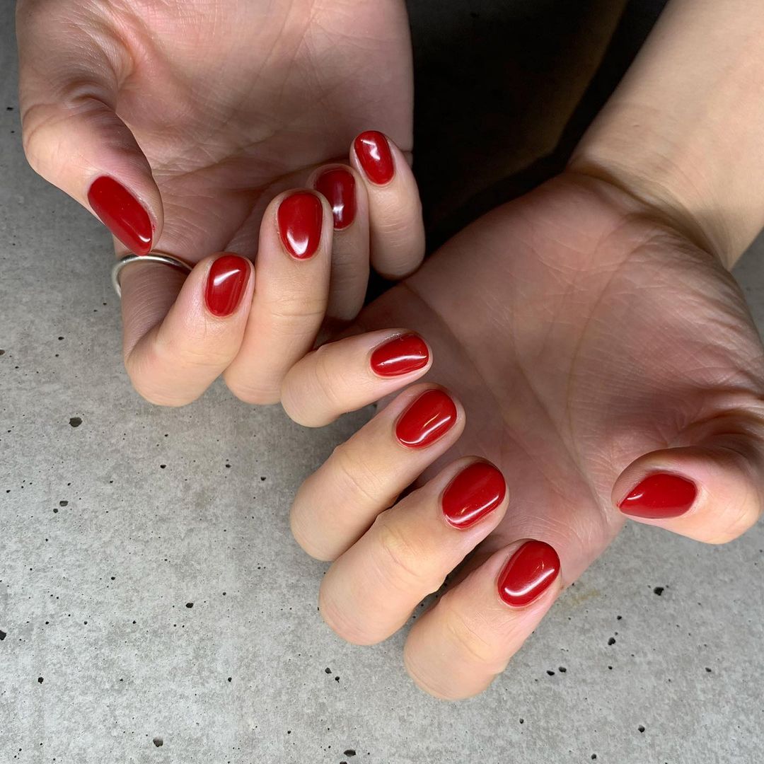 今回はレッド系カラーのワンカラーネイルデザインをご紹介します!