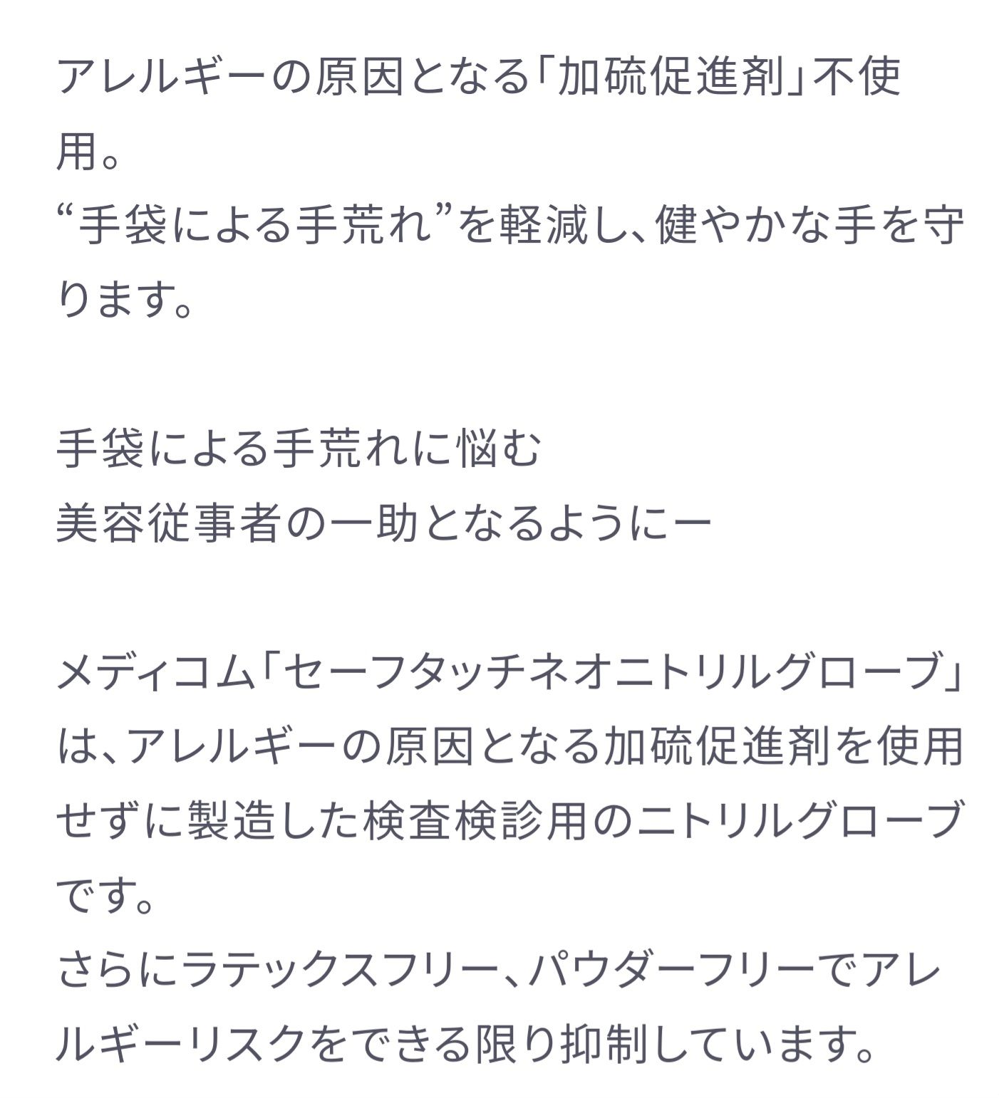 ゴムアレルギーでしたら、ニトリルの手袋もいいかもしれません🙆‍♀️ 私はゴム手袋がダメだったので、ニトリルを使ってます! 乾燥していたり傷があったりすると、ニトリルでも反応出ますが💦