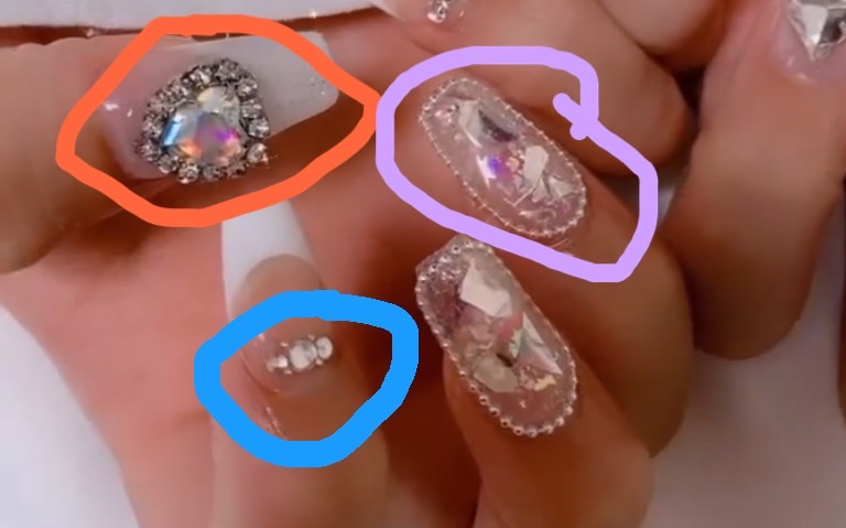 写真のような、大中小のパーツ、チェーン等のとれない埋め方、フォルム綺麗な埋め方教えてください🙇♀️