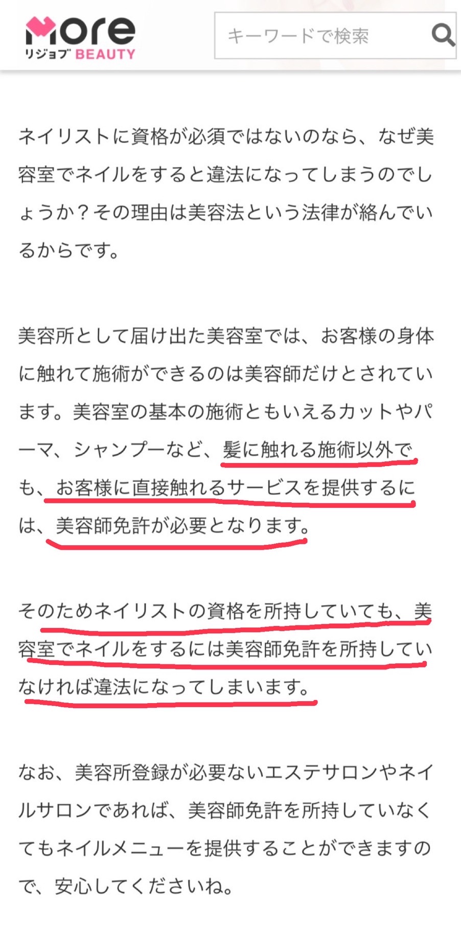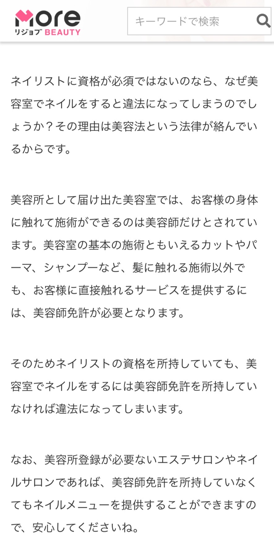 知り合いの美容師さんが、ネイルを導入するのにしっかり調べたら…壁のようなもので仕切らないとダメらしいです。