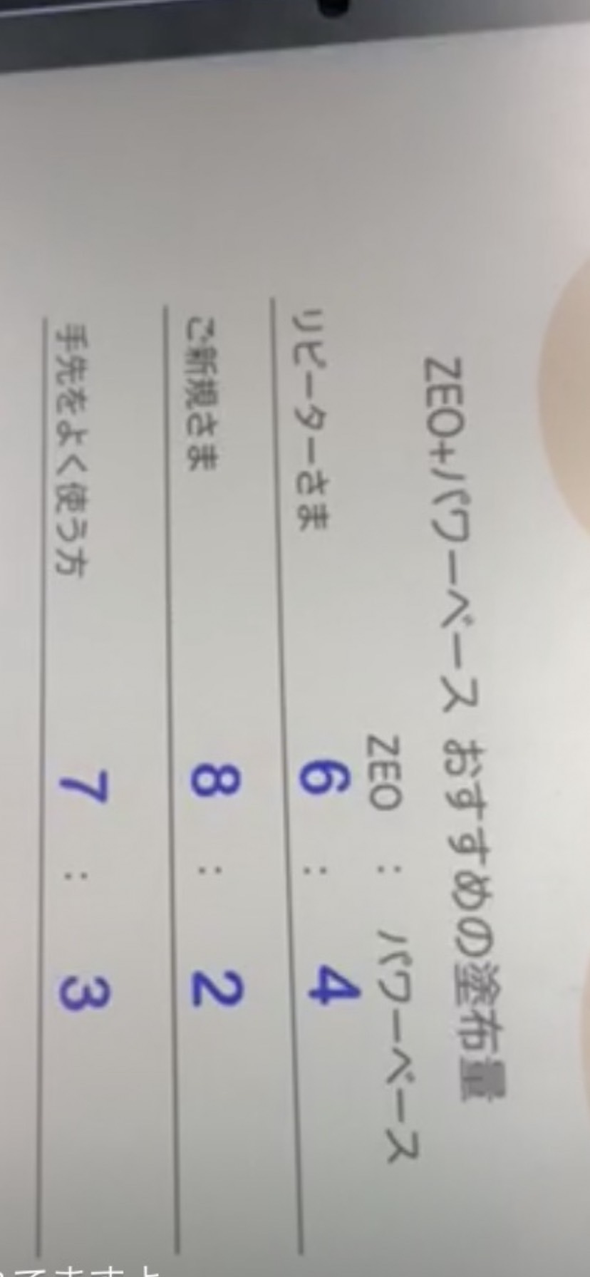 シャイニーのインスタライブで聞いた、ゼオとパワーベースの割合で施術してますが、どーも上手くいきません。