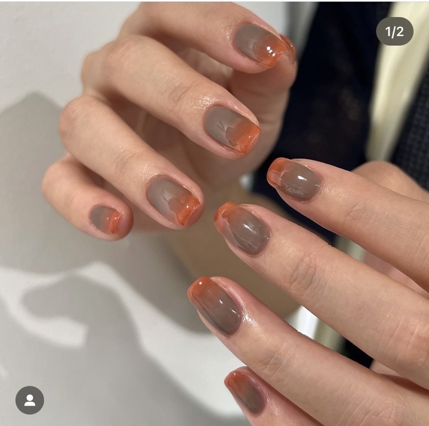こちらのオレンジとグレージュのグラデーションネイルの工程を教えて下さい🙇🏻‍♀️