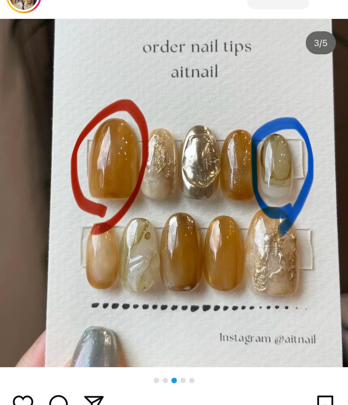 赤丸部分は、オーロラフィルムの上に、シアー系のオレンジブラウンを重ねてると思います◎