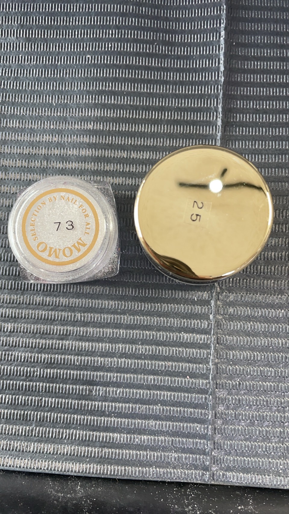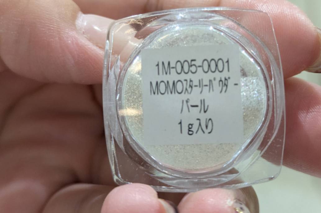 このデザインをするのにオススメのパウダーありますでしょうか💦 今日MOMOのパールパウダーを使用してみたのですが、ザラザラしたような感じで、角度を変えたらすこしグレーかかったように見えます。