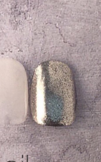 お写真がちょっと不鮮明なのですが、テラコッタジェル…粘土や砂のようなザラっとした質感のジェル…にミラーパウダーこするのはどうですか?