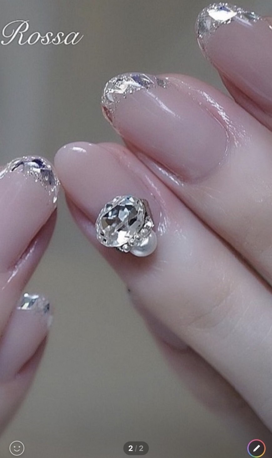 トップコートの上から、Vカットストーンとパールなどで組み合わせたものですね。