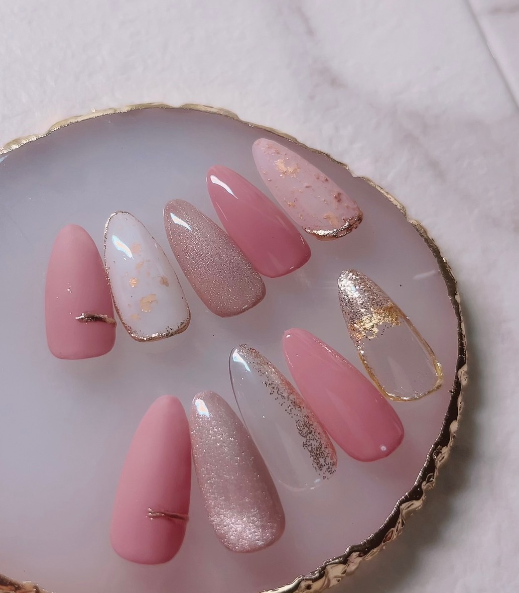 柔らかい春らしい雰囲気をモチーフとしているのであれば左、クールな印象だと右が合いそうなので、チップのデザイン的には左ですかね✨