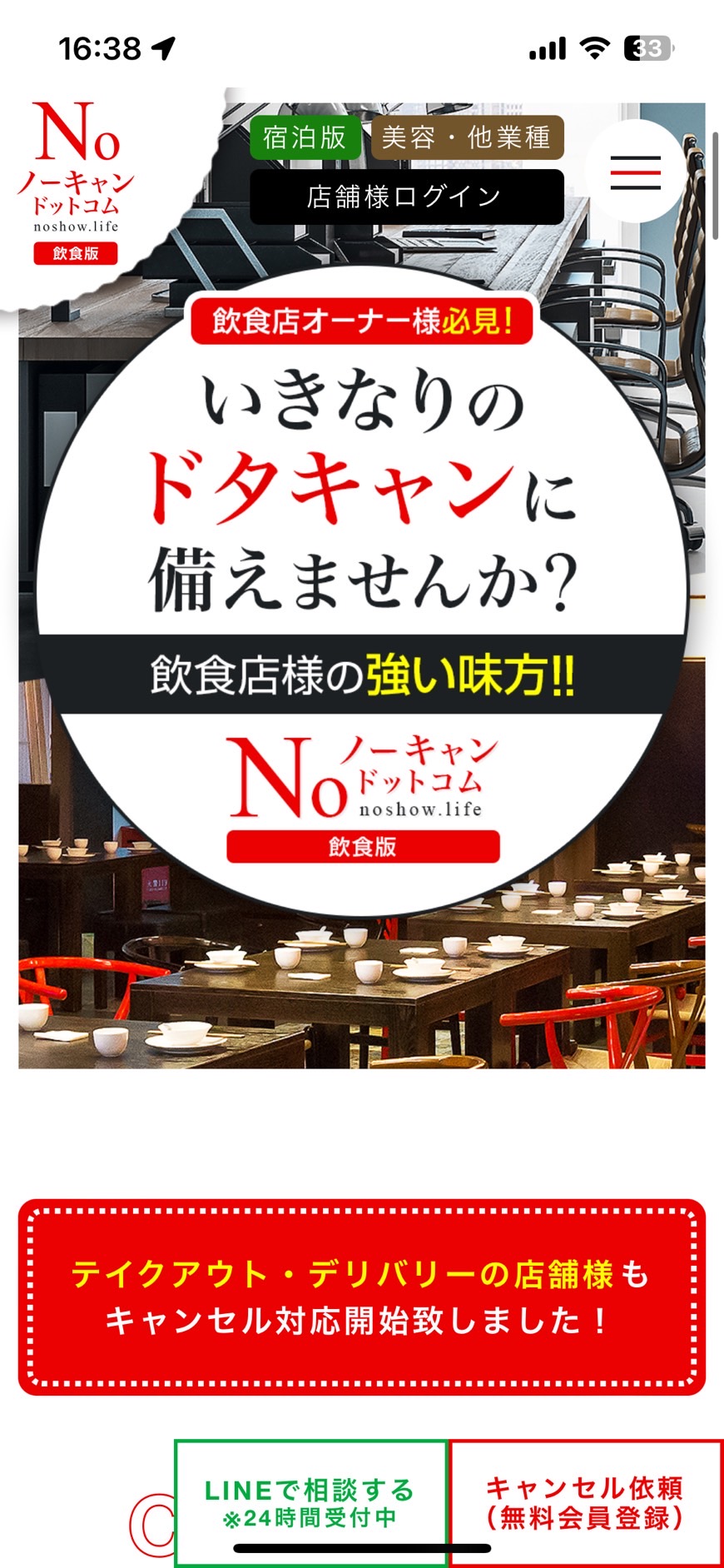 うちは当日キャンセル50%、無断キャンセル全額頂くので、スクエア予約を導入しています。