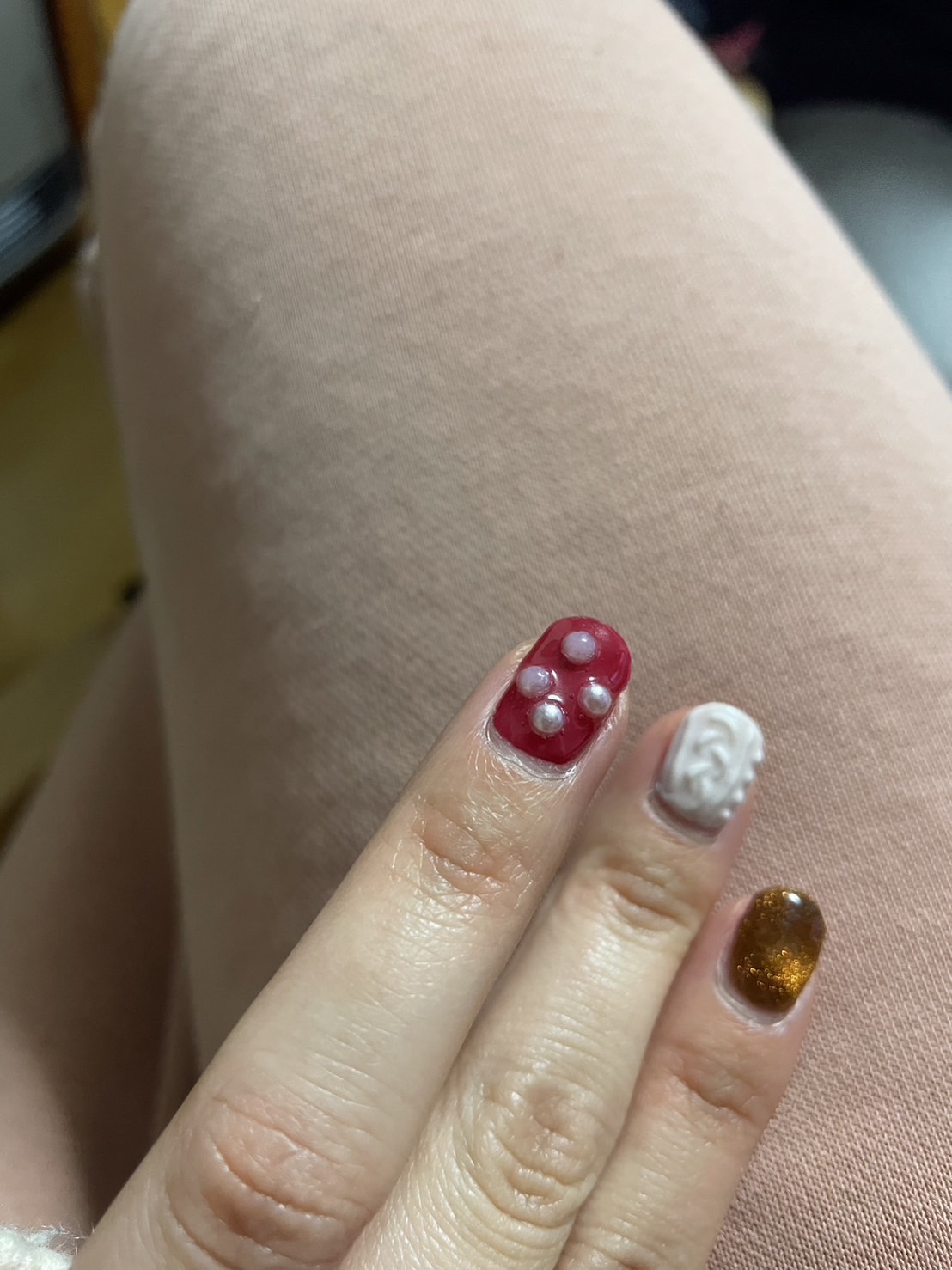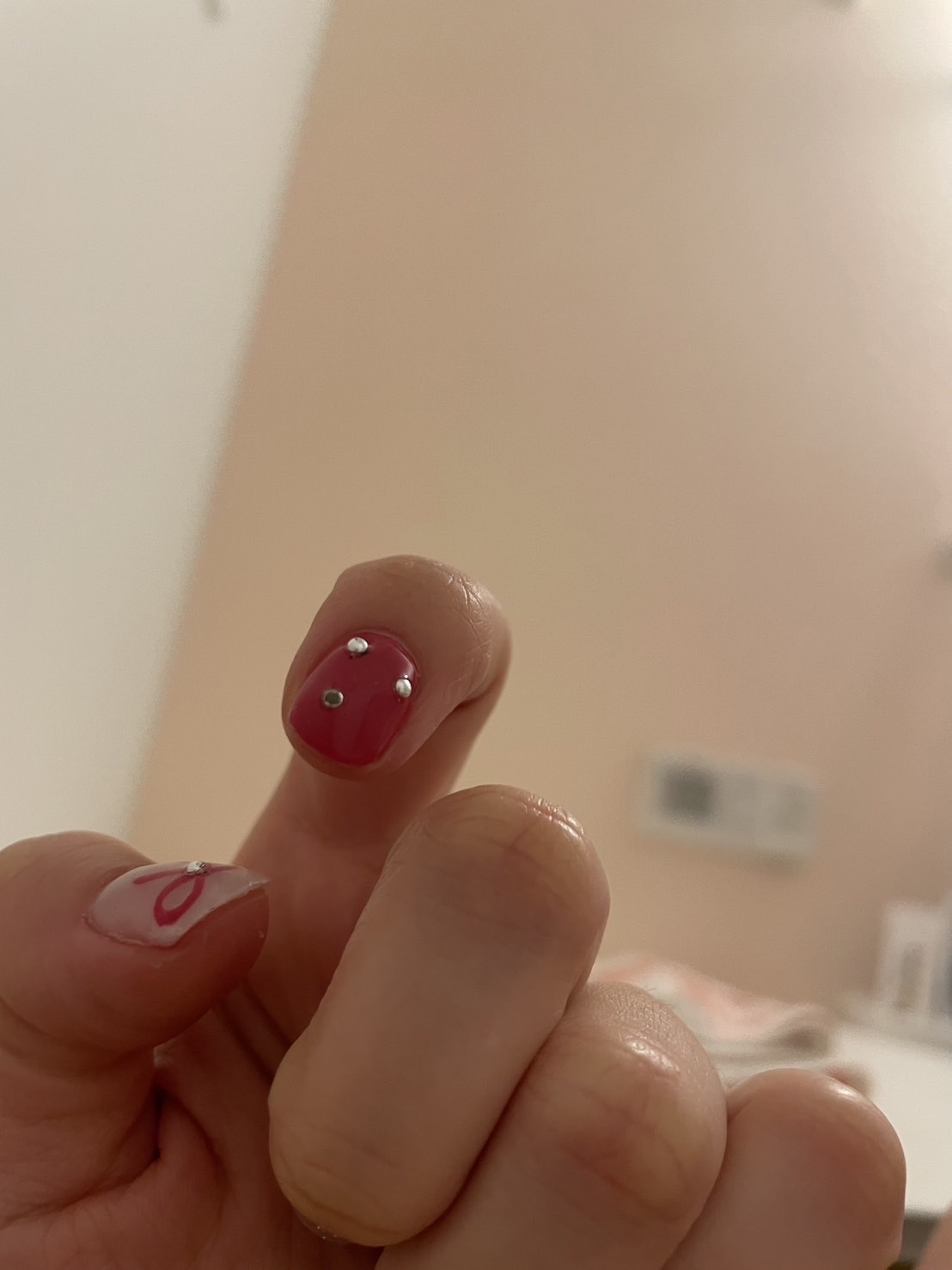 スタッズやパールがこの写真のように輝き?を無くしてしまいます。。 何故なんでしょうか💦 どこかで擦ったりはしていないようで、トップもしっかり塗ってます。。