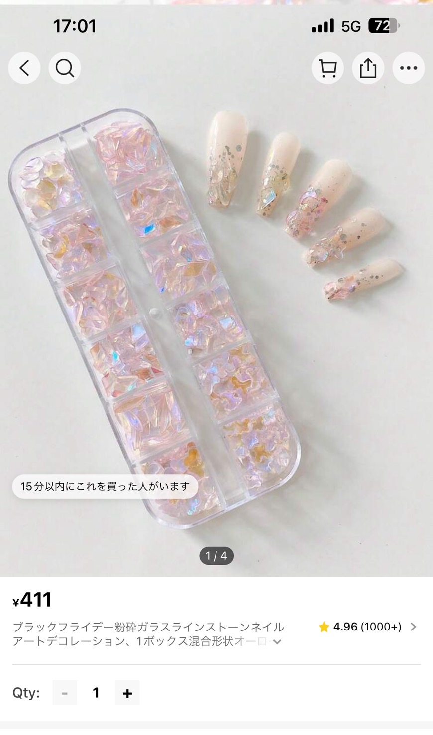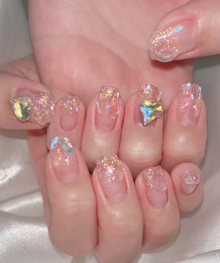 写真はピンクのラメでやってありますが、もっと動画に寄せたラメつけて、パーツはこの辺つけるとおんなじ感じになると思います!