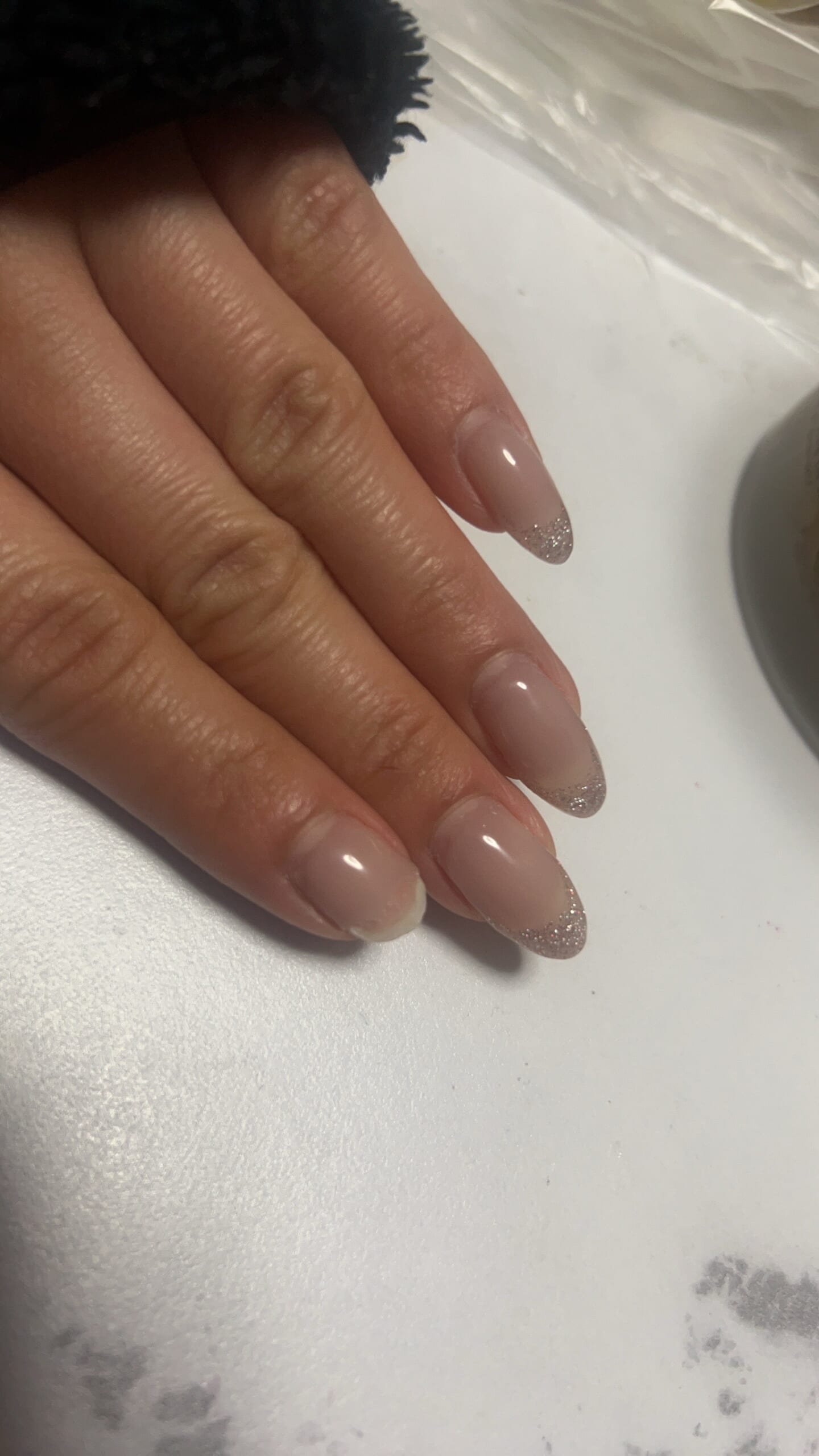 今まで、長さ出しする時は自爪の人だけだったので、2年目にして初めて写真のように折れたお客様からの長さ出し希望です。