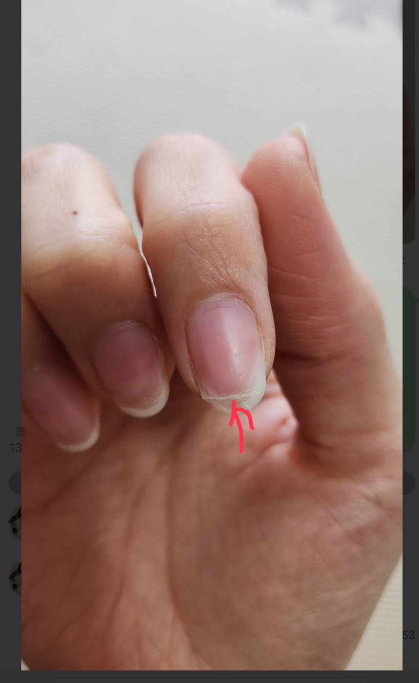 ご事情でこの前他店様のを一旦オフしたのですが、めちゃくちゃペラペラで、用事が終わったらまたしたいとご予約いただいたお客様でして、赤矢印のところはお肉がくっついており、両サイドから裂けてしまったと、このようになってしまったようで、11日にご予約があるのですが、それまでにそこの一本だけ補強できますか?と聞かれたのですが、私自身予約枠の空きがなく、どう対応したらいいのか…