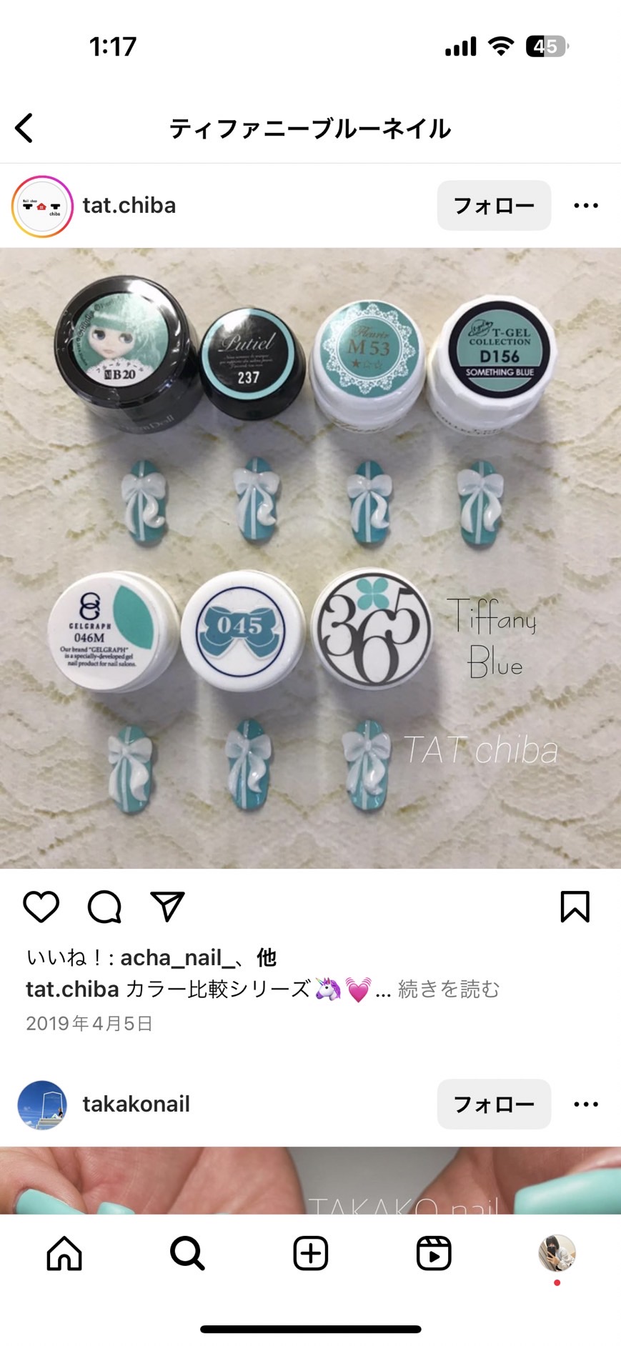 こんばんは。 ティファニーブルーに近いカラージェルを知りませんか?? なかなか見つけられなくて困っています💦