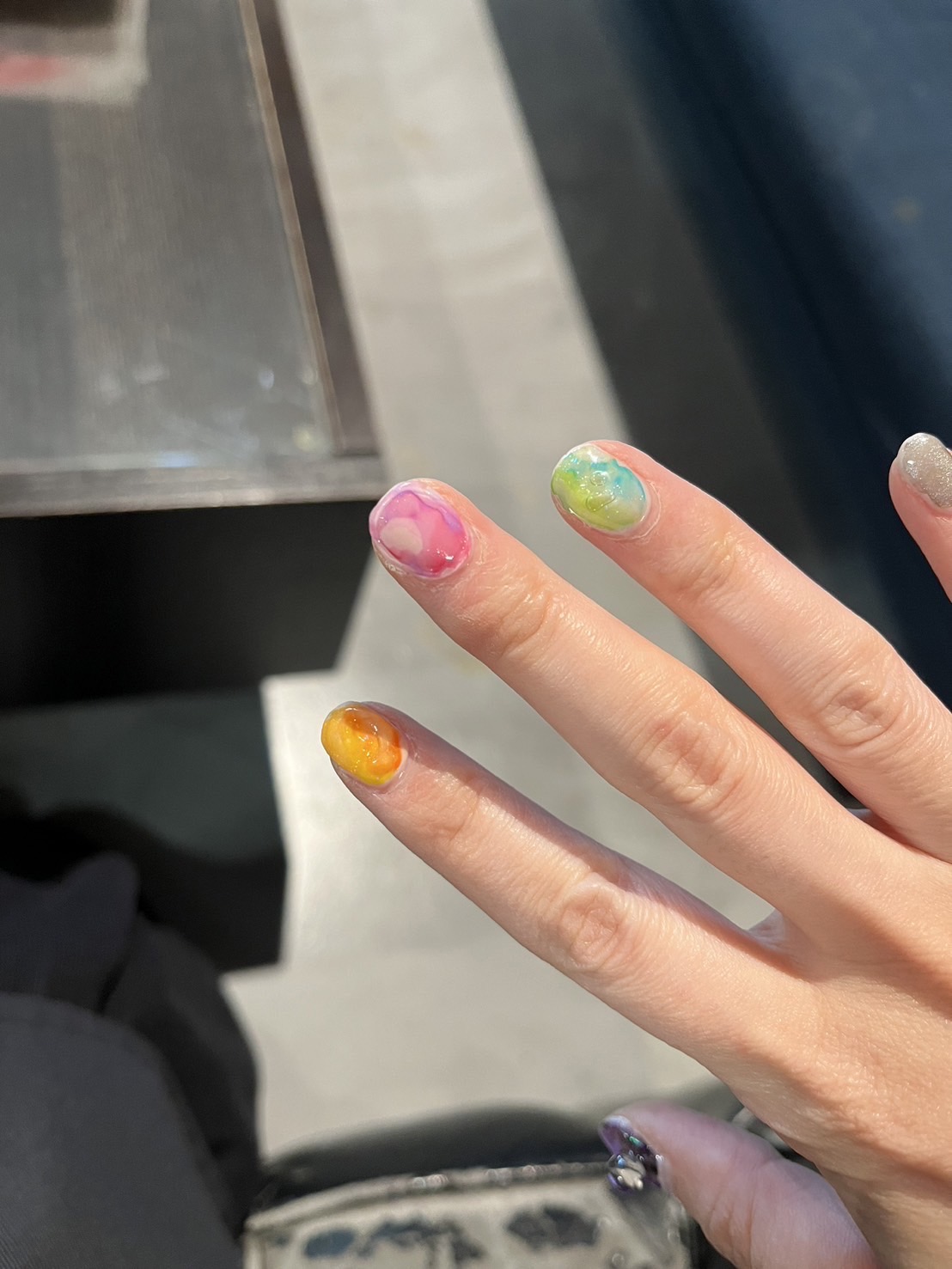 3日前に水彩パレットを使ったネイルをしたお客様のネイルが、一部分だけ剥げました💦