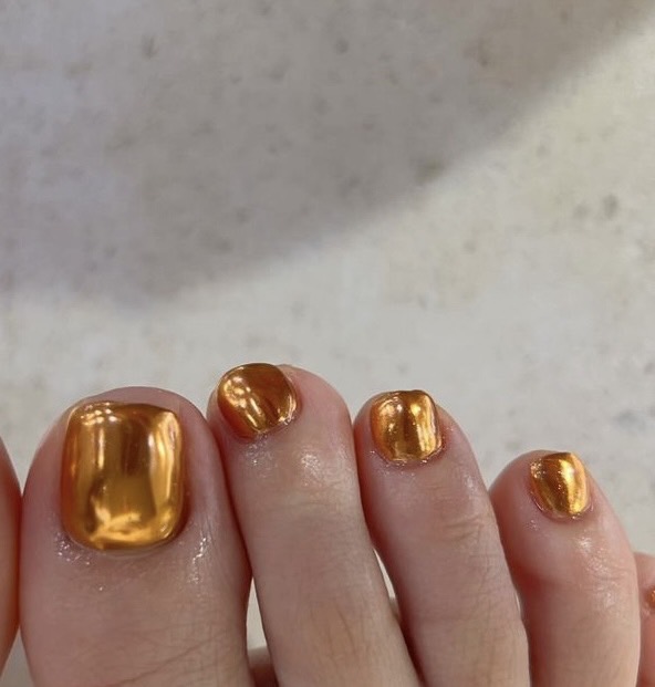 自爪が透けないカラーを塗って、シルバーのミラー→オレンジのクリアカラー塗ってもできそうです🤔