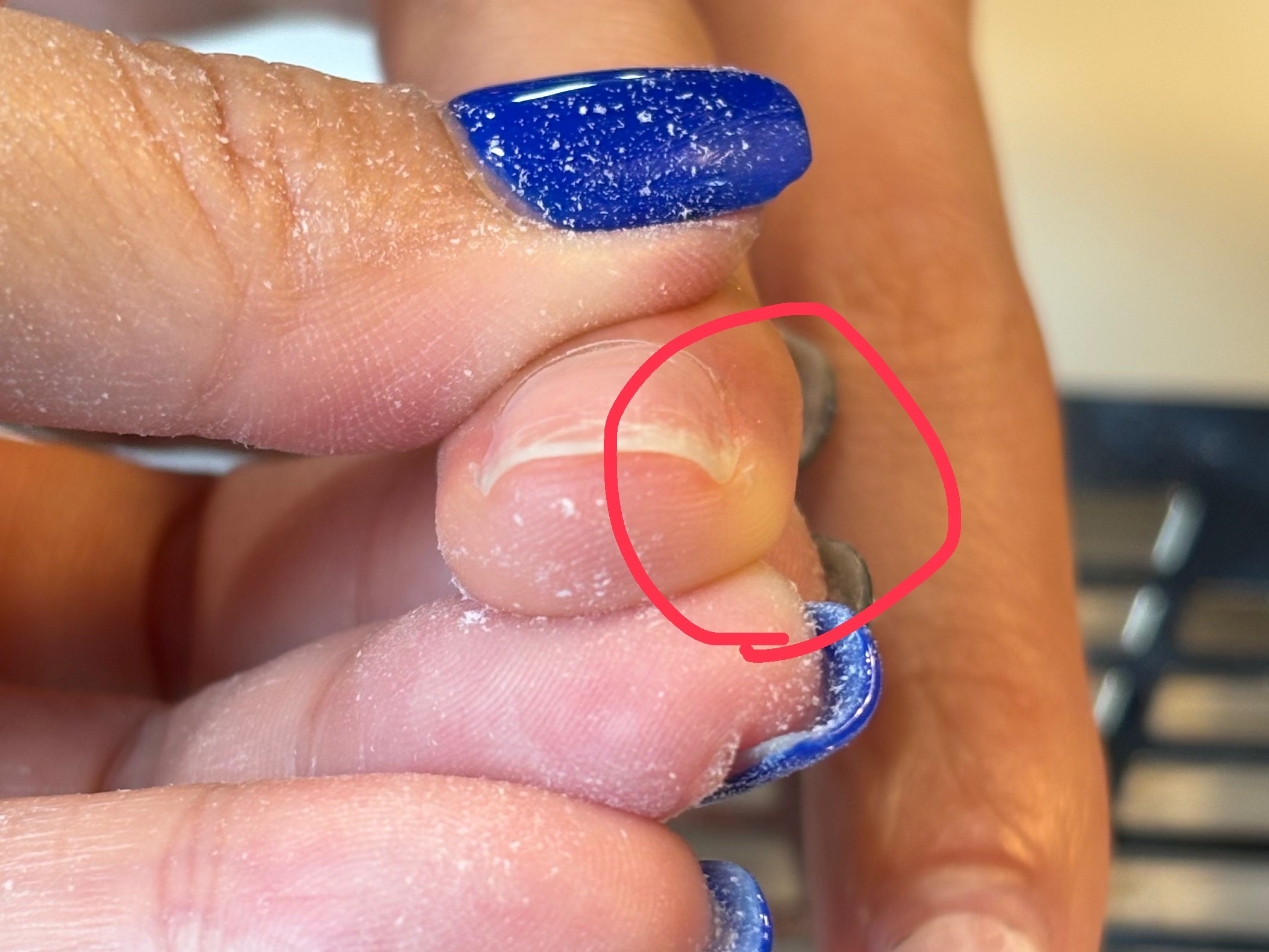 この方元々自爪が薄く尚且つ縦筋も多々入ってきてしまっており、特段浮きやすい方で。。。