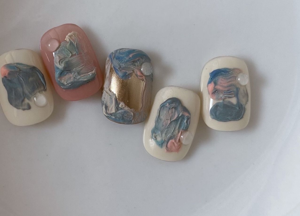 最近、ジェルにアクリルパウダー?混ぜて立体感出したりしている動画もよく見ます。(あれはアクリルパウダーなのかしら???)
