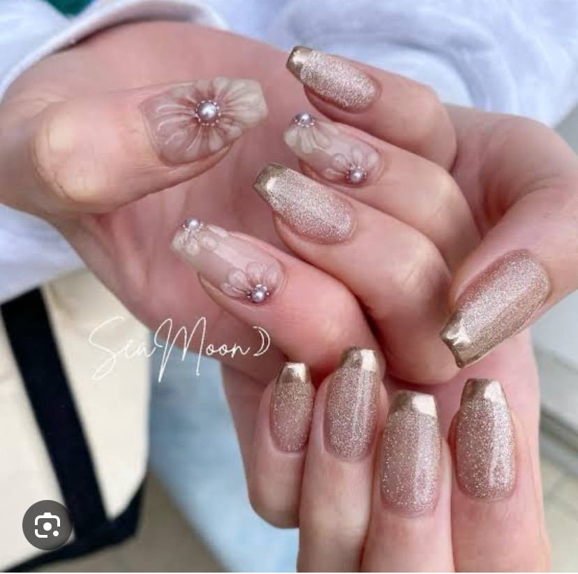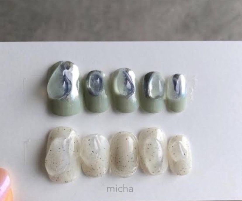 私なら、1.2枚目は粘土ジェル、3枚目はビジューアートジェル(固めのクリアなどでも)を使用します◎
