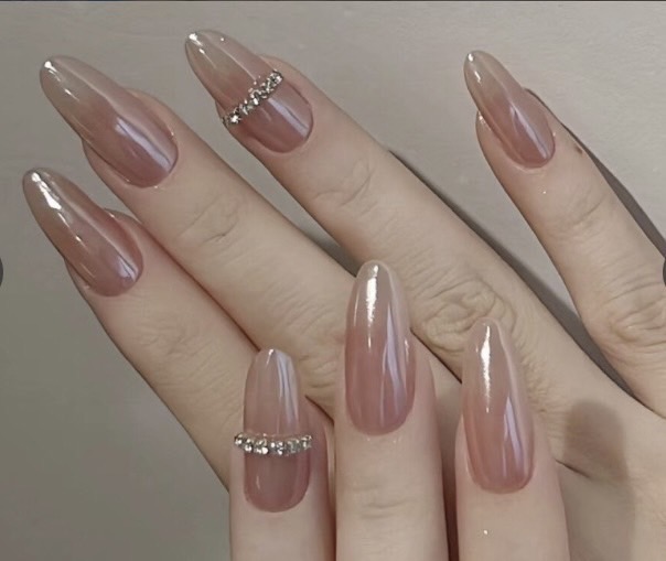 ピンクベージュのベースカラー、ノンワイプトップ塗った後にオーロラパウダーだと思いますー!
