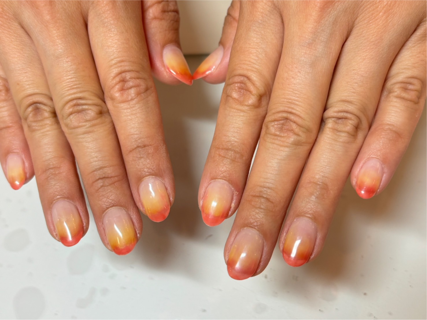 希望さんがパレットでグラデーション施術後、爪の中間が変色する問題について相談。