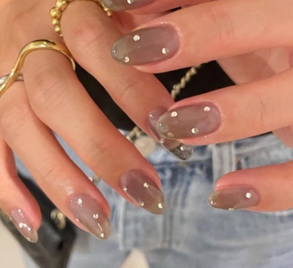 このネイルデザインの丸いのはストーンですか?ホロですか?