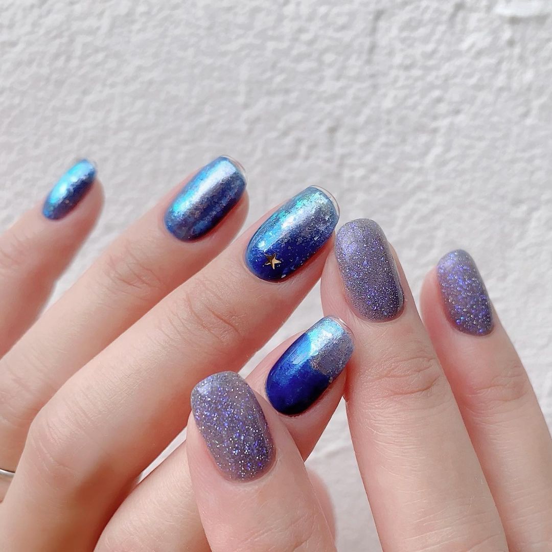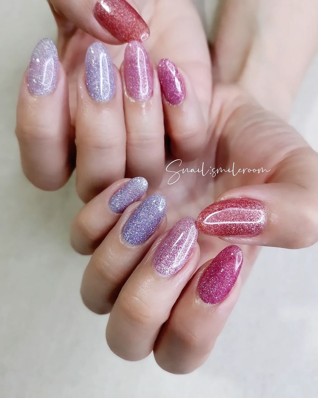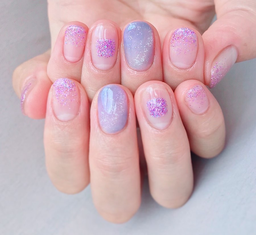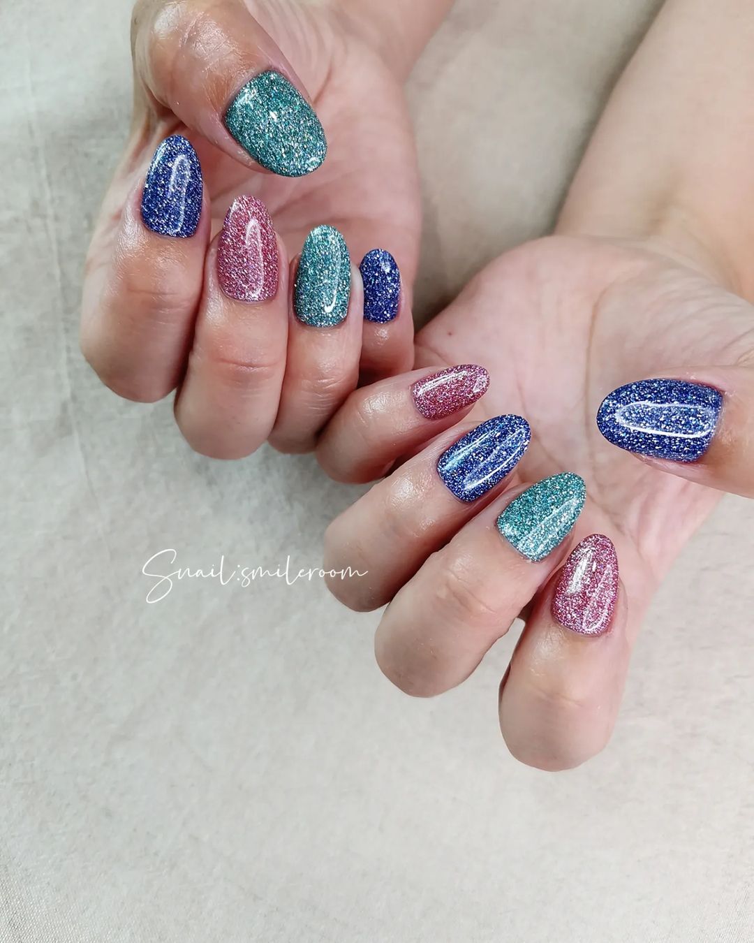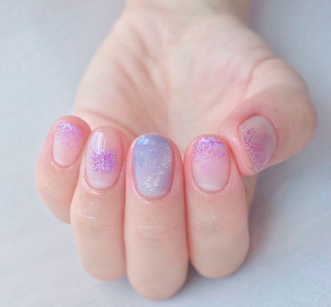 【ピンク・パープル・ブルー】カラフルなキラキラネイル54選!
